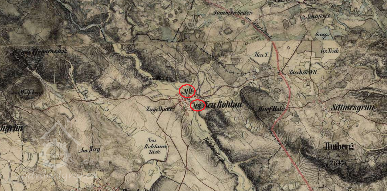 1654 Berní rula: mlynář Hans Haberzett, 10 str. rolí, 8 ks hov. dobytka, 26 ovcí, 3 prasata (není známo, na kterém mlýně)