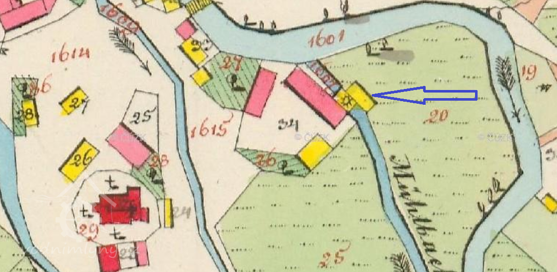1654 Berní rula: mlynář Hans Haberzett, 10 str. rolí, 8 ks hov. dobytka, 26 ovcí, 3 prasata (není známo, na kterém mlýně)