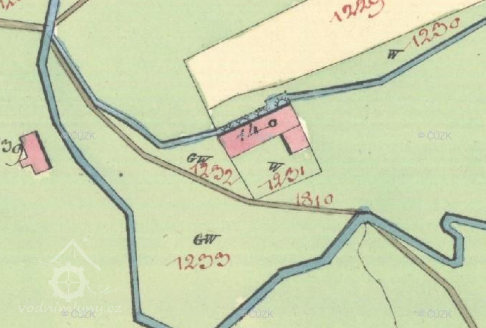 1930: 1 kolo na svrchní vodu, hltnost 0,105 m3/s, spád 5 m, výkon 4,6 HP