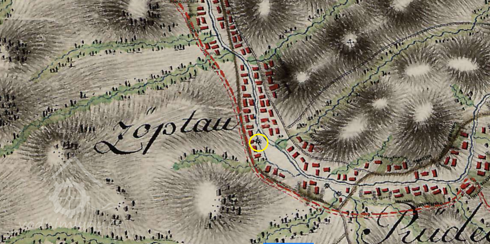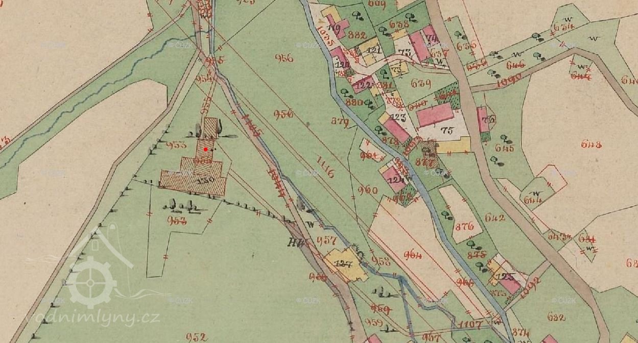 Popis1930: 1 kolo na svrchní vodu, hltnost 0,145 m3/s, spád 3,9 m, výkon 4,9 HP