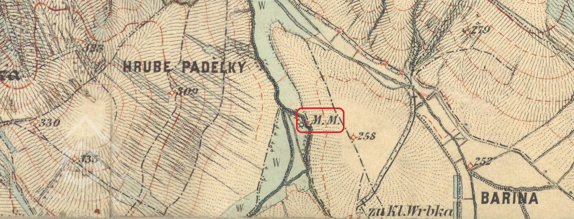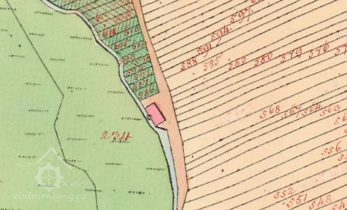 Mlýn stával na samotě, severozápadně nad obcí v lokalitě Dolní Bařina.