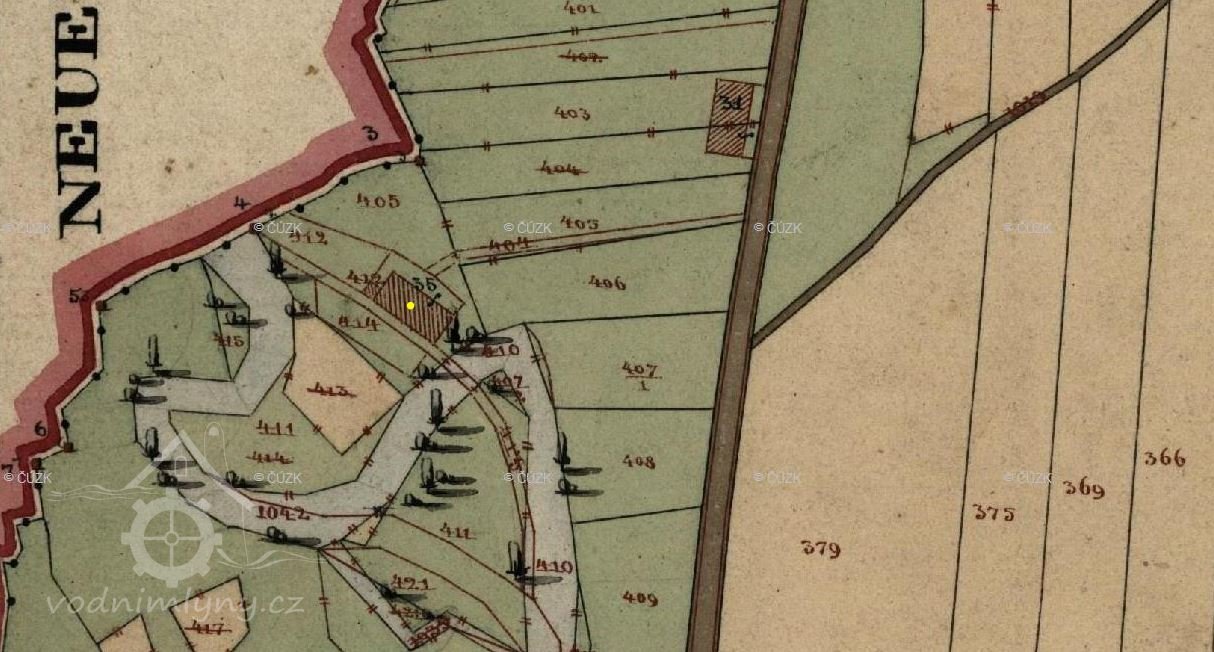 Mlýn se poprvé objevuje jako dokreslená stavba na originální mapě stabilního katastru, na indikační skice zakreslen není, vznikl tedy až ve druhé polovině 19. stol.