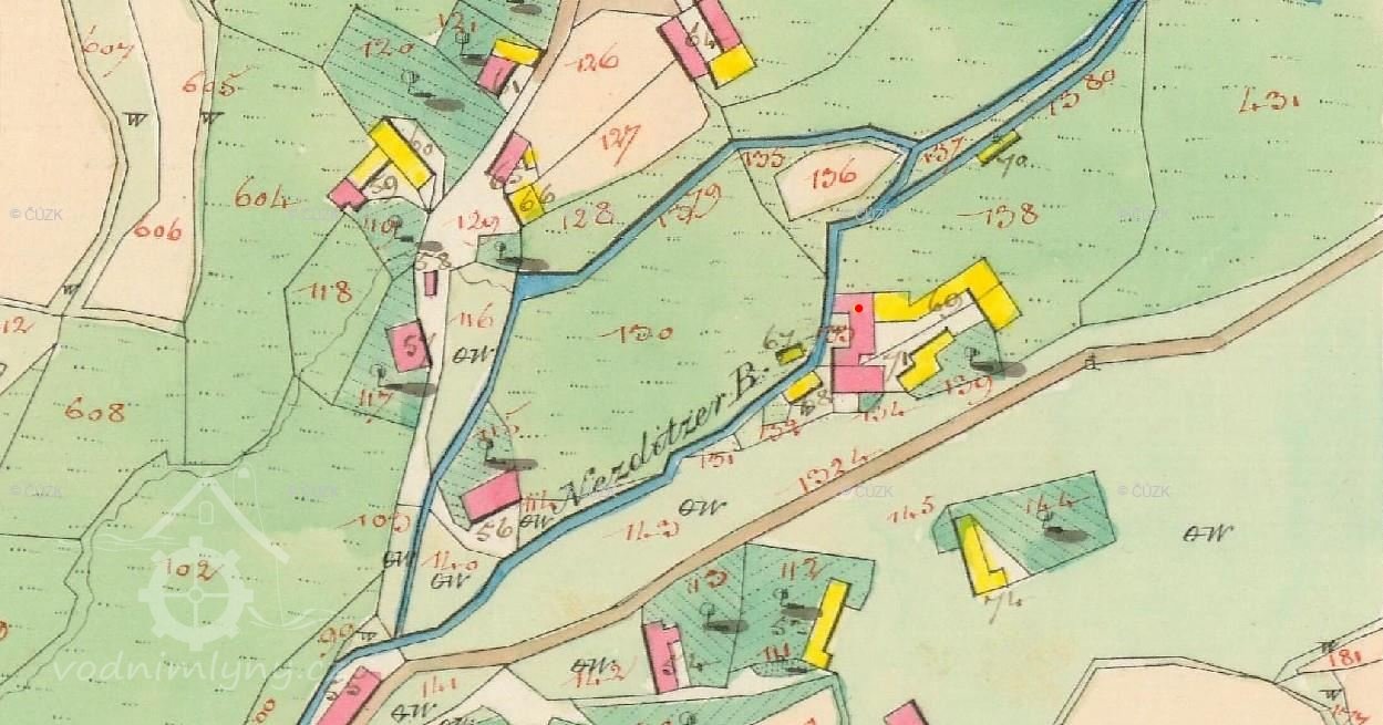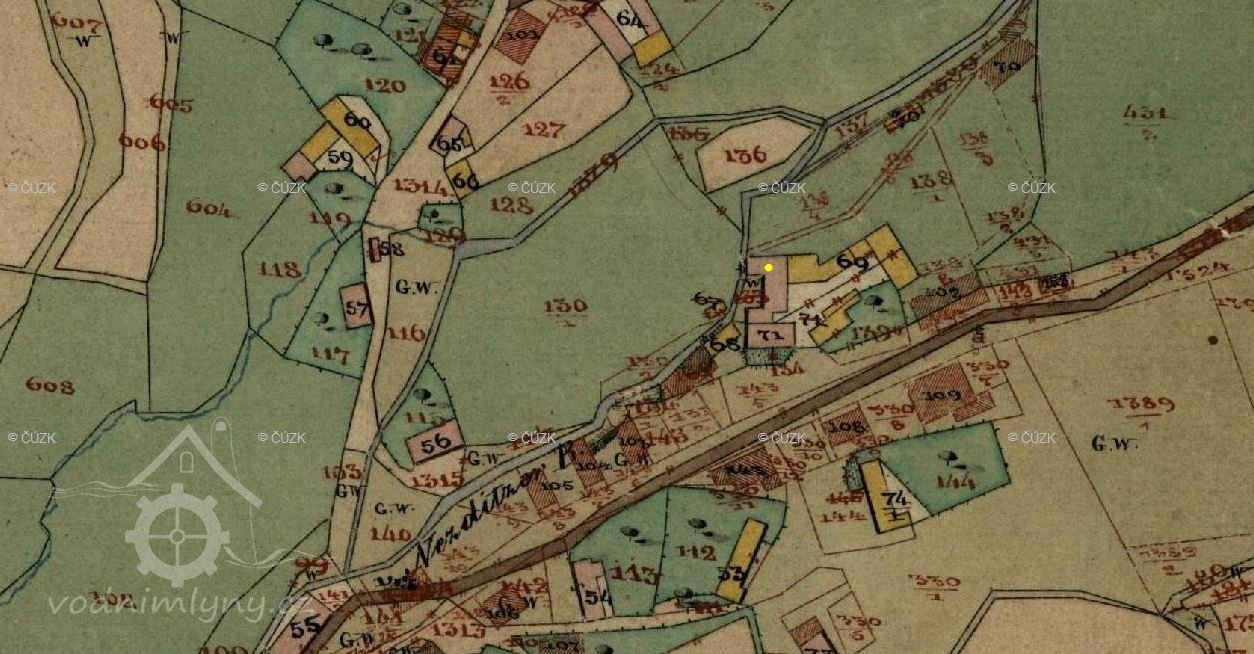Mlýn je zachycen již na mapě I. voj. mapování.