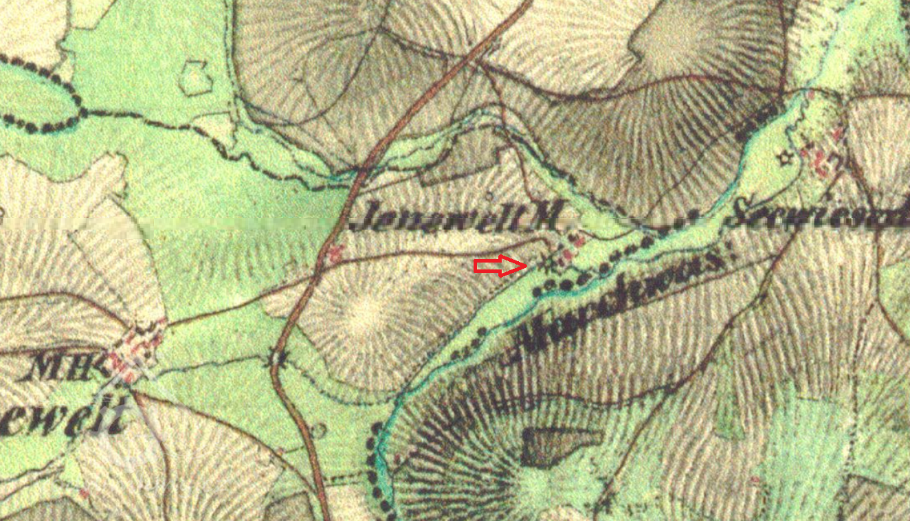 Mlýn na Hamrlíku je zakreslen již na mapě I. voj. mapování, původně hamr při menší železářské huti byl přeměněn na mlýn s pilou.