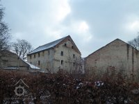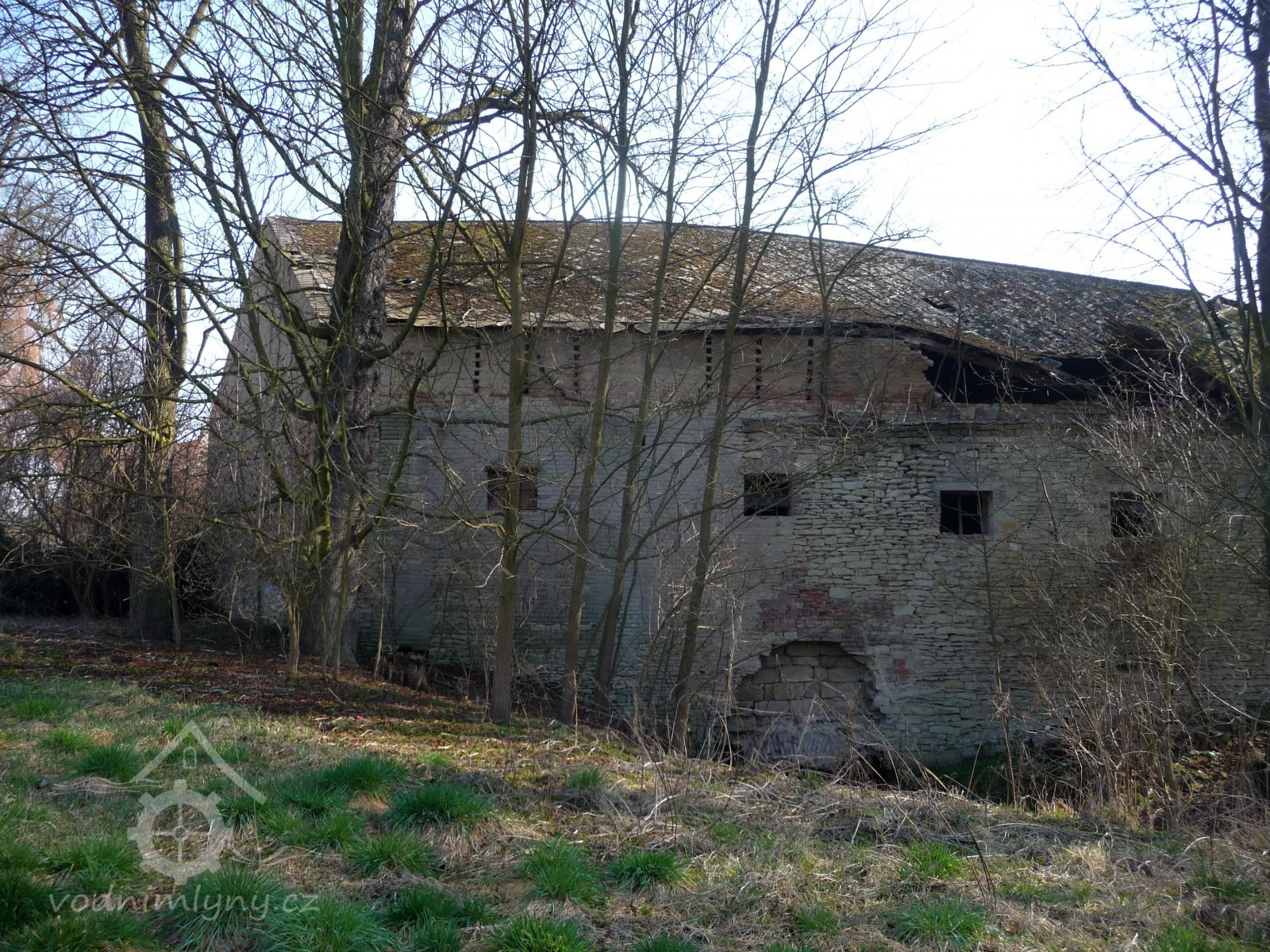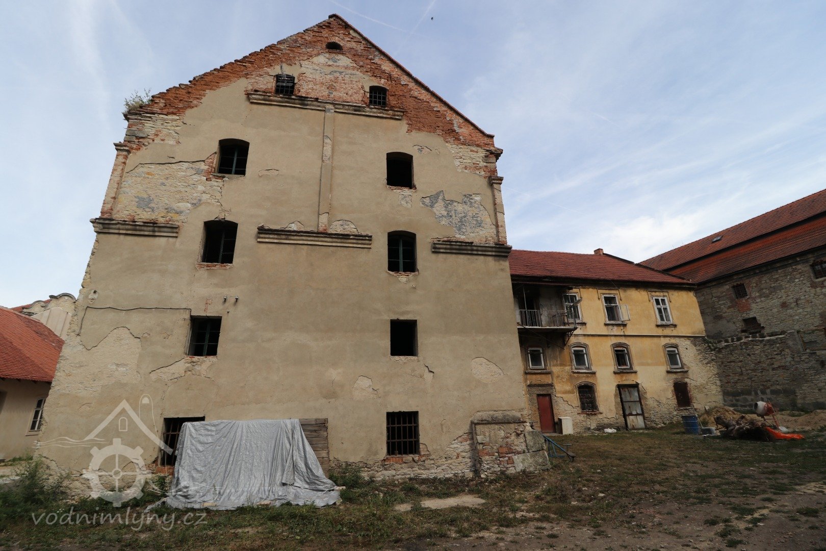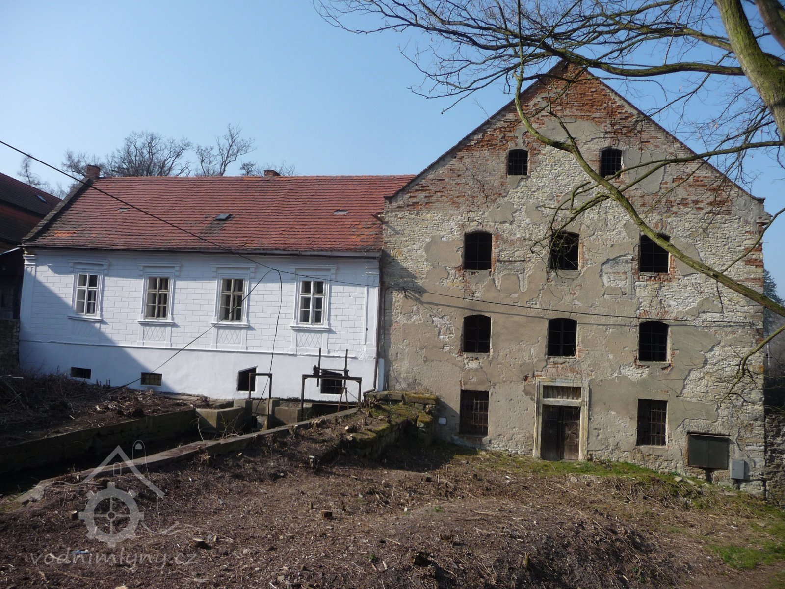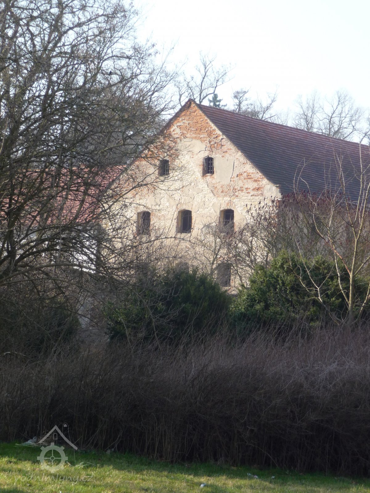 Zchátralá zadní část mlýna, v pozadí dvůr s obytnou budovou, 2015, © Helena Špůrová