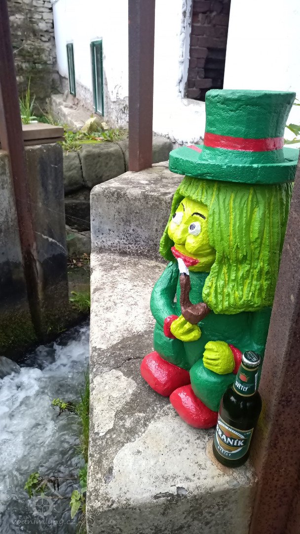 Vodník u mlýna, 05 2021, © Umělecký mlýn Liběchov, (Prvky na obrázku: umělecké prvky (sochy, malby, reliéfy))