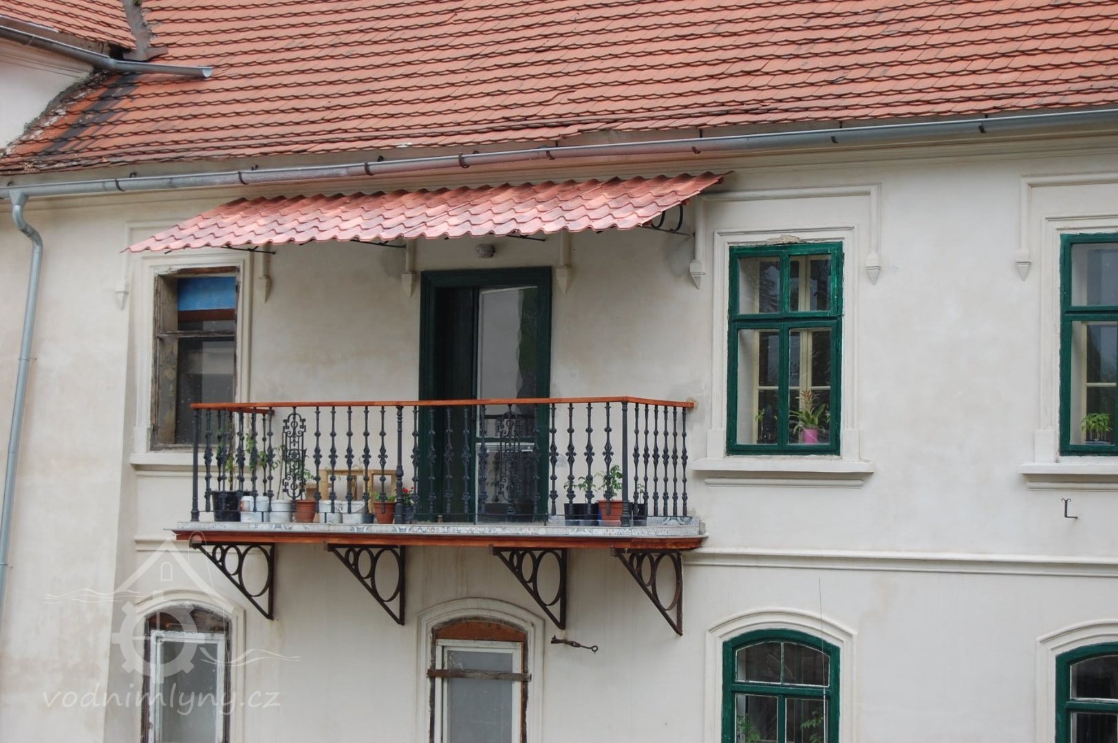 Detail pavláčky, 05 2021, © Umělecký mlýn Liběchov, (Prvky na obrázku: pavlač, balkón)