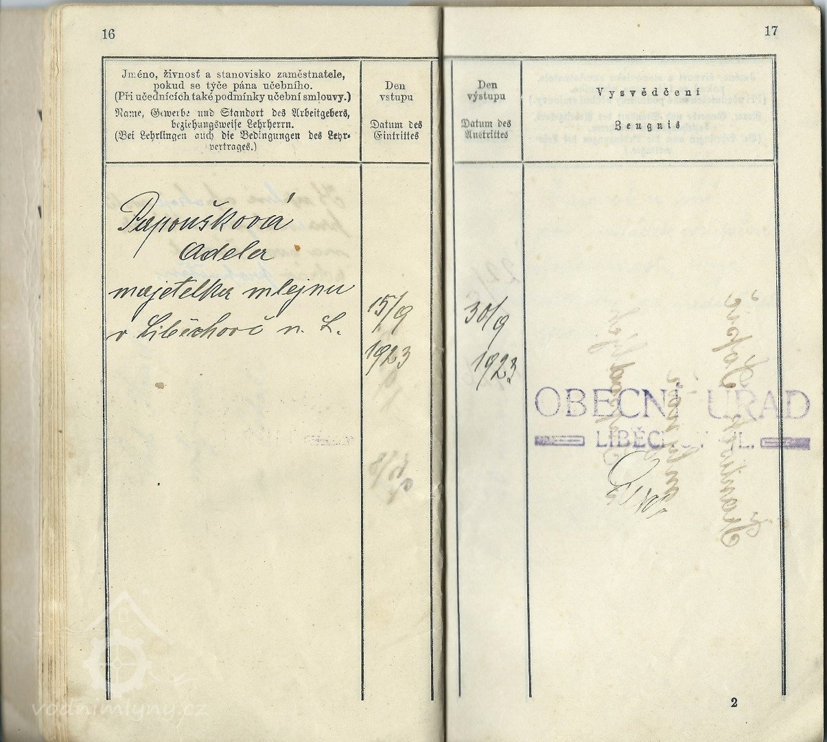 Vandrovní knížka Josefa Golbrichta, 1923, © Umělecký mlýn Liběchov, (Prvky na obrázku: vandrovní knížka)