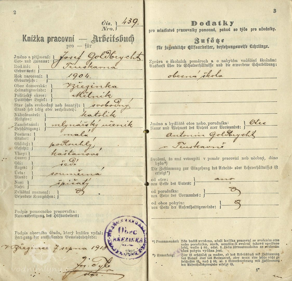 Vandrovní knížka Josefa Golbrichta, 1918, © Umělecký mlýn Liběchov, (Prvky na obrázku: vandrovní knížka)