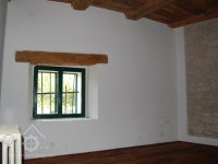 Okna u obytné budovy a mlýnice, plastická omítka obytné budovyy, 2015, © Helena Špůrová, (Prvky na obrázku: okno, plastická omítková výzdoba fasád a štítů)