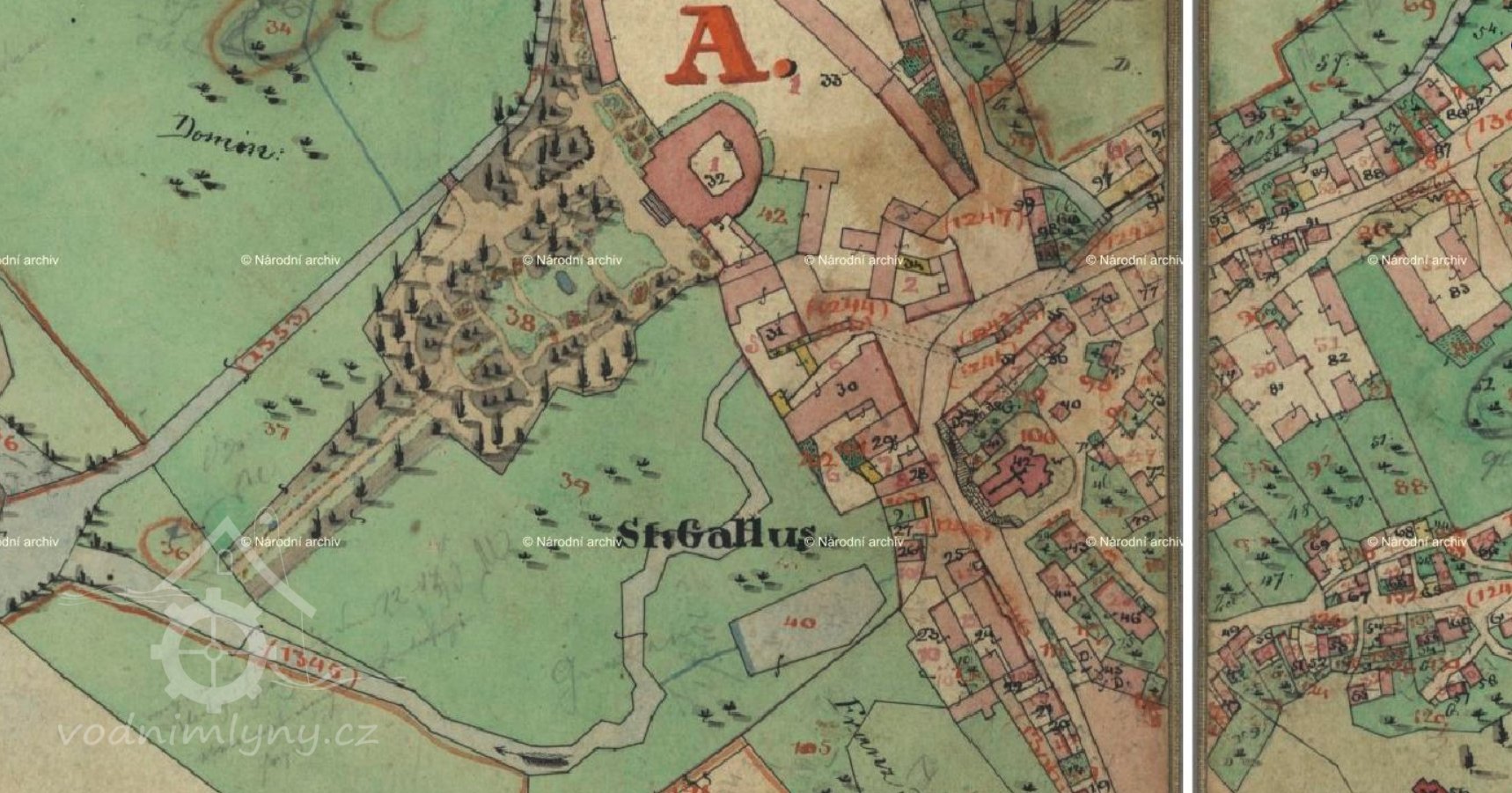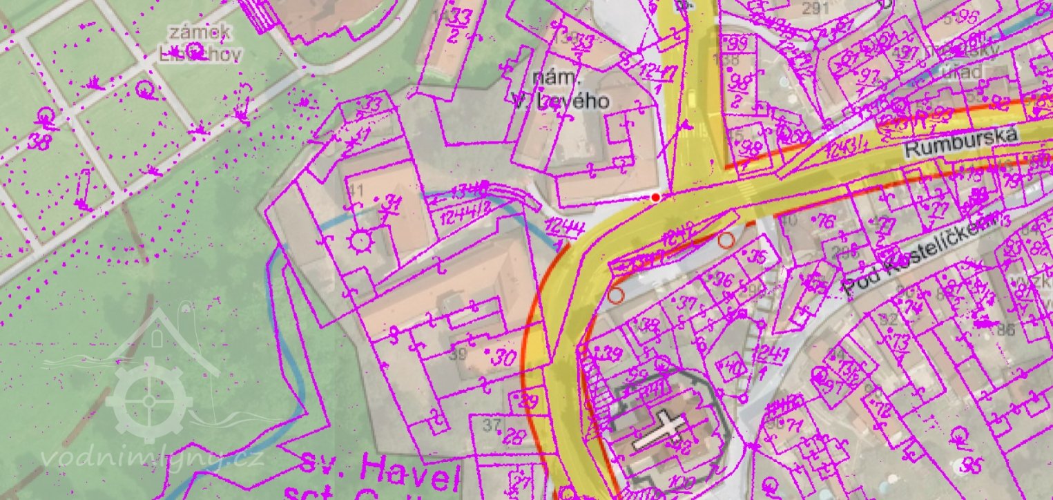 Umístění mlýna v areálu, srpen 2018, © Šimek