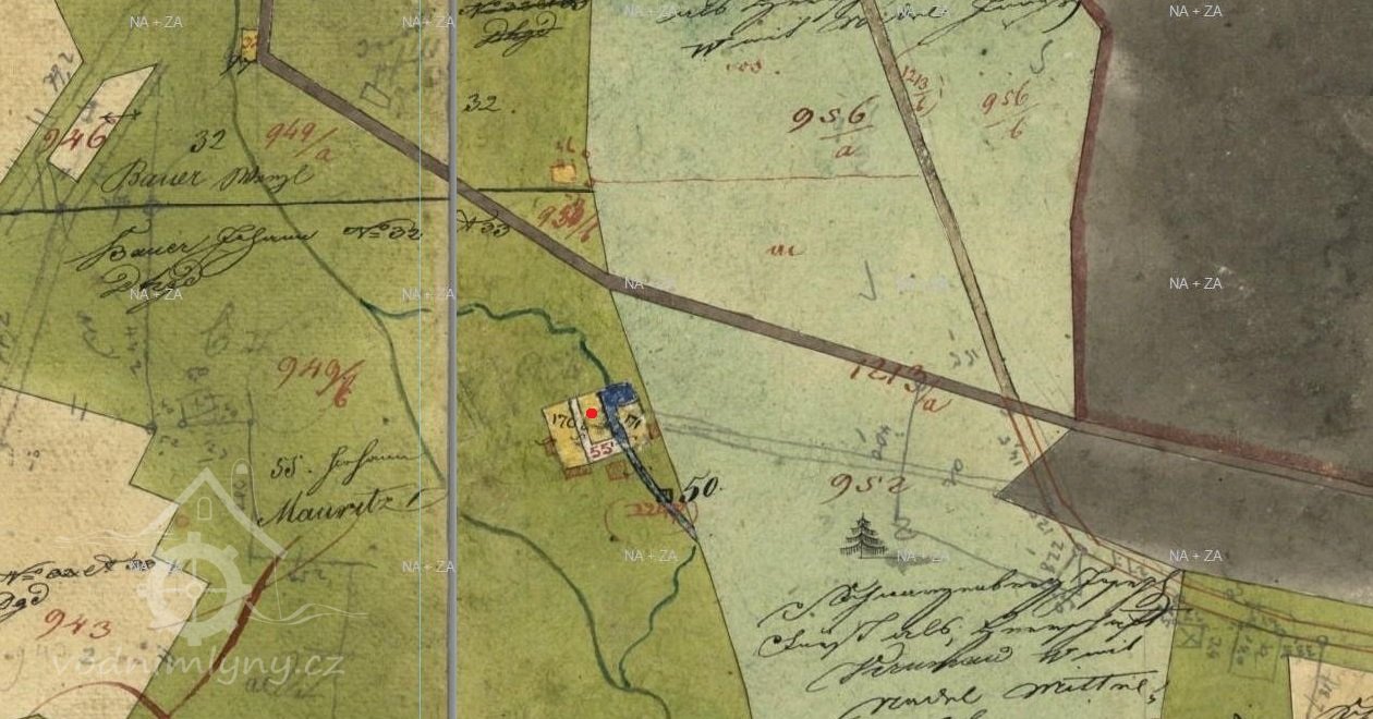 Mlýn, spolu s celou usedlostí vznikl někdy mezi roky 1826 - 1848. Na originální mapě stabilního katastru z roku 1826 se mlýn objevuje jako dokreslená stavba, v rámci aktualizace z roku 1848, v té době mlýn vlastní Johan Mauritz.