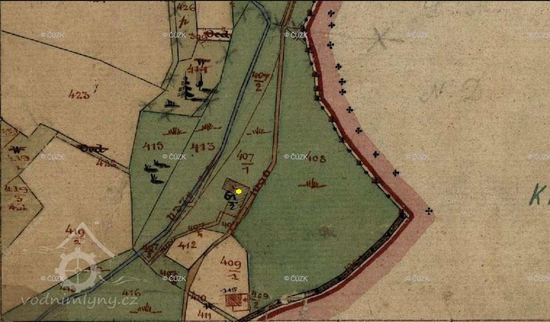 Mlýn se poprvé objevuje na mapě stabilního katastru, jako doplnění v rámci aktualizace, vznikl tedy někdy kolem poloviny 19. stol. Na mapě z roku 1880 je uvedený jako Kořínkův.