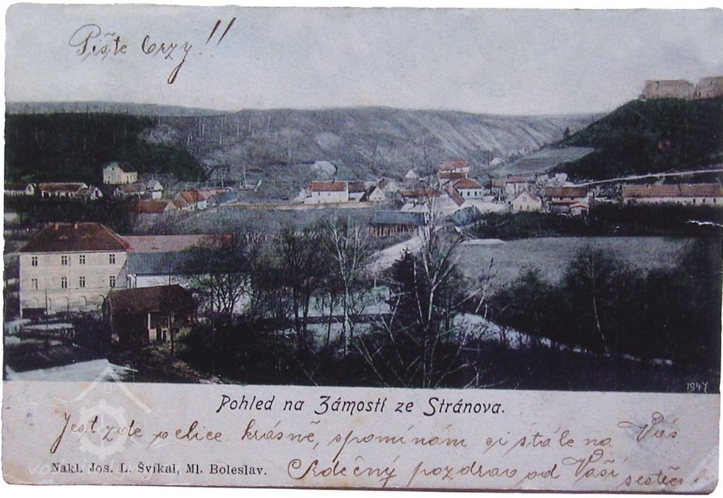 1414 Václav Myška z Hrádku postoupil mlýn a sladovnu v Zámostí v dluhu 100 kop Petrovi z Palohlav a z Křídy a jeho ženě Zdeňce, po jejich smrti připadly obě živnosti, role, louky, zahrada u mlýna, řeka a struha králi Jiřímu Poděbradskému.