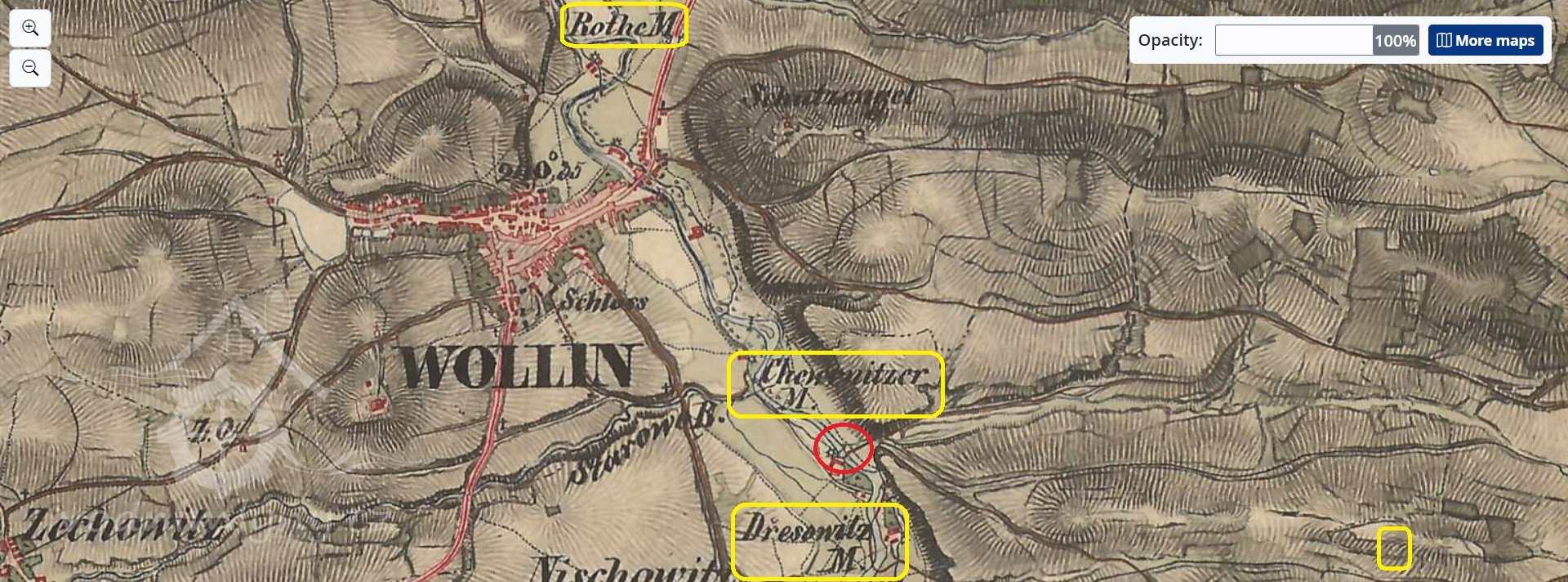 1) Jakub Rožek, byl mlejn o 2 kolách, nyní jest pustej, 20 str. rolí, 1 kůň, 7 ks hov. dobytka, 4 ovce, 2 prasata