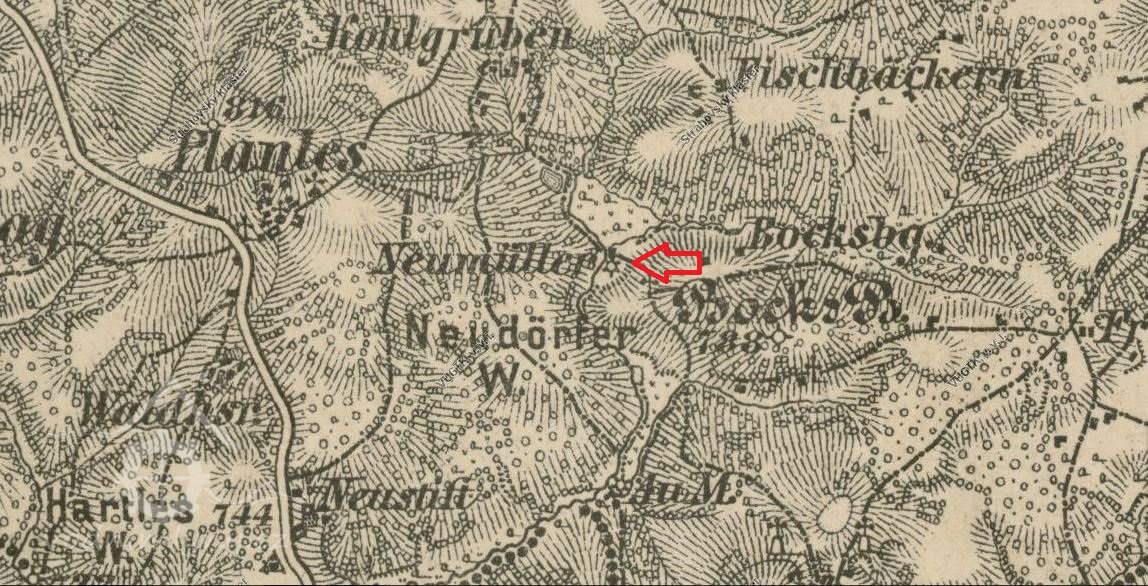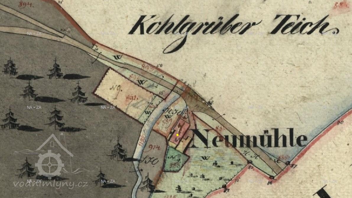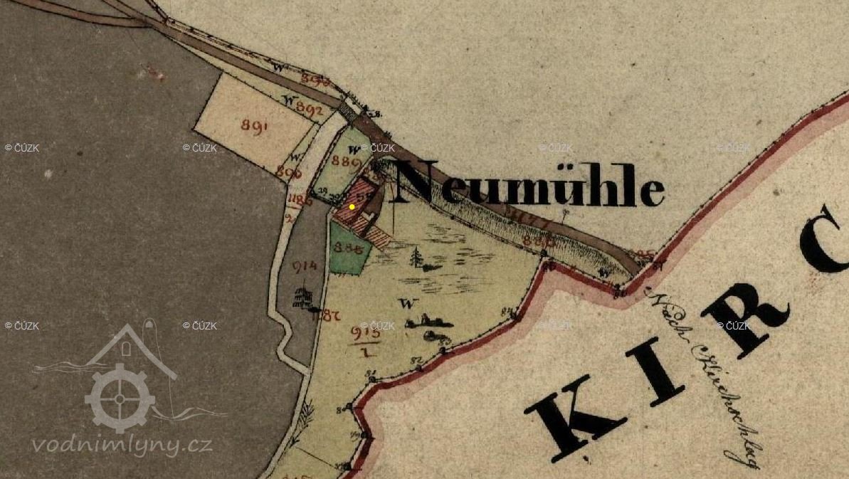 Mlýn je zachycen již na mapě I. voj. mapování.