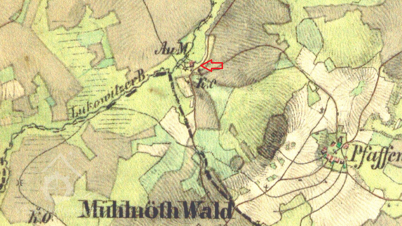 Mlýn je zachycen již na mapě I. voj. mapování. V roce 1826 vlastní mlýn s pilou Magdalena Bauer.