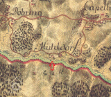 1654 Berní rula: Matyáš Vichpock, vlastní mlýn o 1 kole, 25 str. rolí, 18 ks hov. dobytka, 5 ovec, 4 prasata