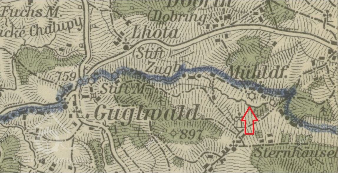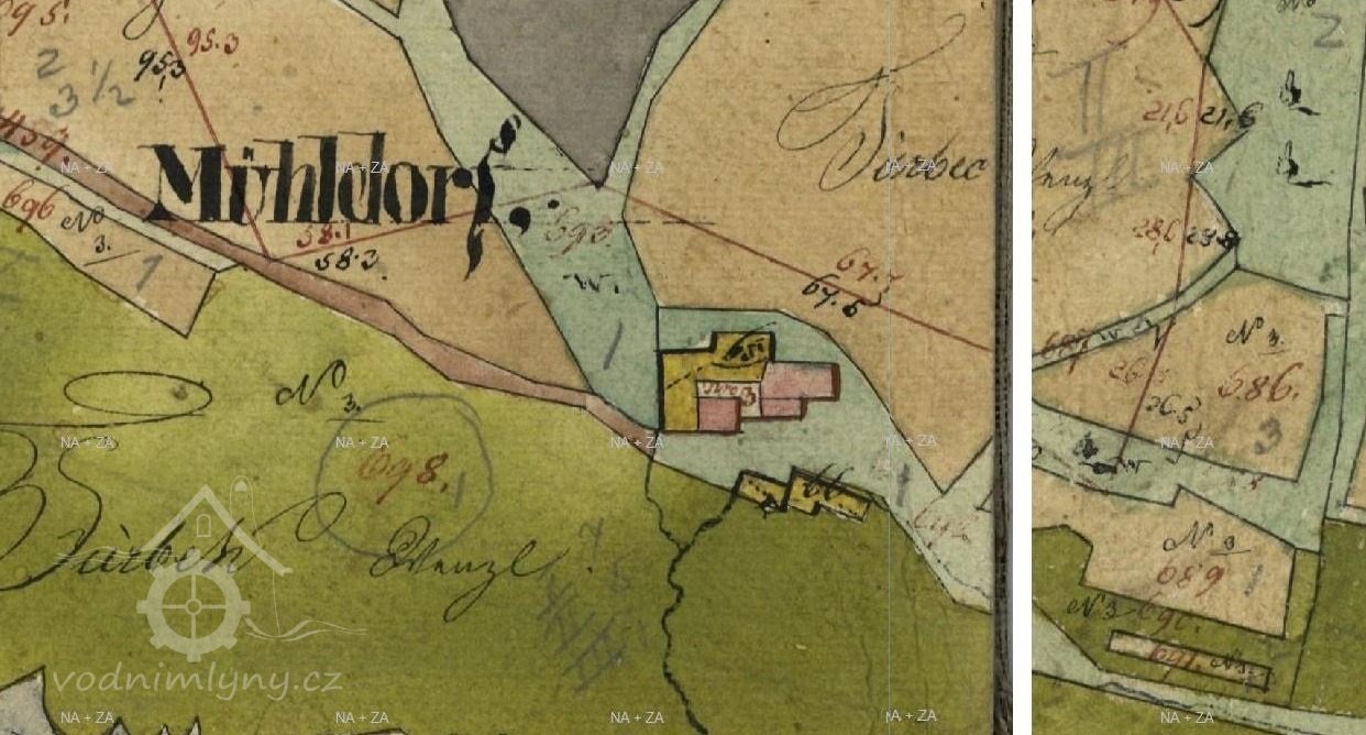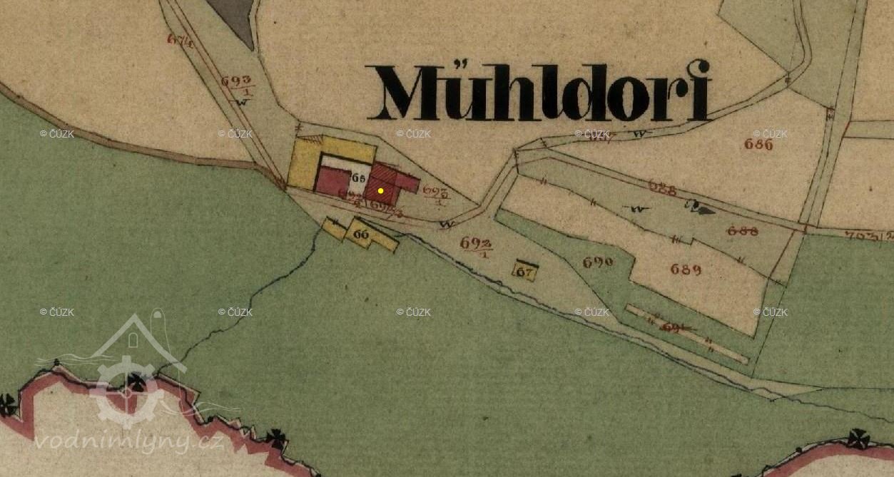 První písemná zpráva o existenci osady je z roku 1530, kde je v klášterním urbáři pod položkou 26 uvedeno, že Mühldorf, tedy mlýnský dvůr, patří pod rychtu Kapellen, tedy Kapličky. Mühldorf byl založen vyšebrodským klášterem „na zeleném drnu“ mezi lety 1493 až 1530 Za opata Thomase II. ještě Mühldorf není uváděn a protože v době „lhoty“ se naturální dávky nevybíraly, lze založení osady s mlýnem zúžit mezi léta 1493 až 1515. Měl tři osedlé, tedy tři domy. Tyto domy byly později označeny čísly popisnými 1, 2 a 3. Největší z nich byl od samého počátku dům čp. 3, který je od třicetileté války uváděn jako Mühlnerhaus. K mlýnu patřily dva lány zemědělské půdy, podle Tereziánského katastru 37,54 hektaru.