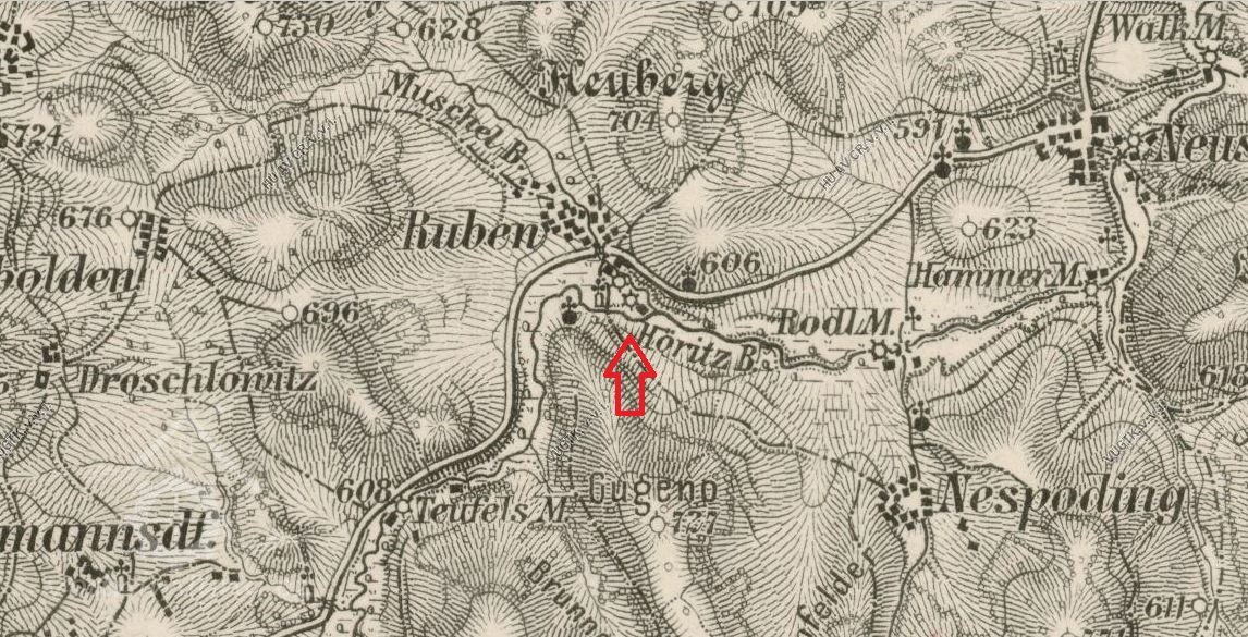 1654 Berní rula: Šimon Reich, vlastní mlejn o 2 kolech a pile, 15 str. rolí, 1 kůň, 8 ks hov. dobytka, 3 ovce, 14 prase