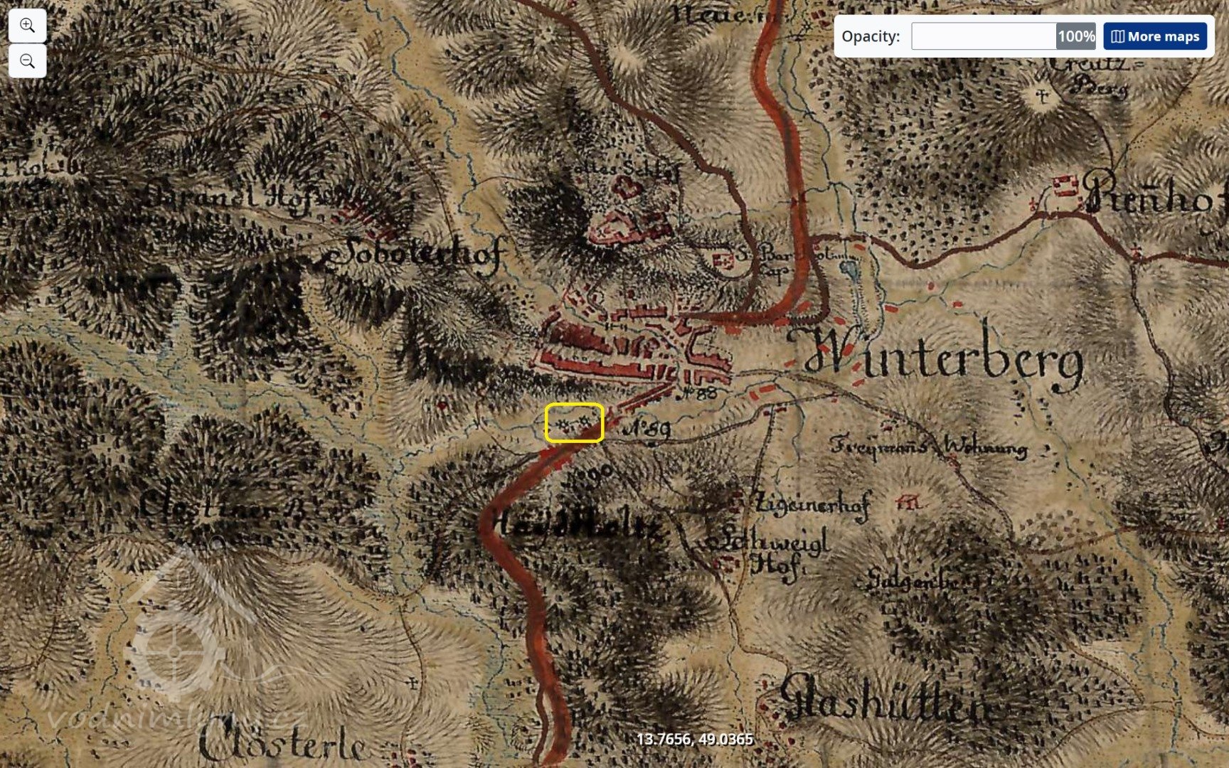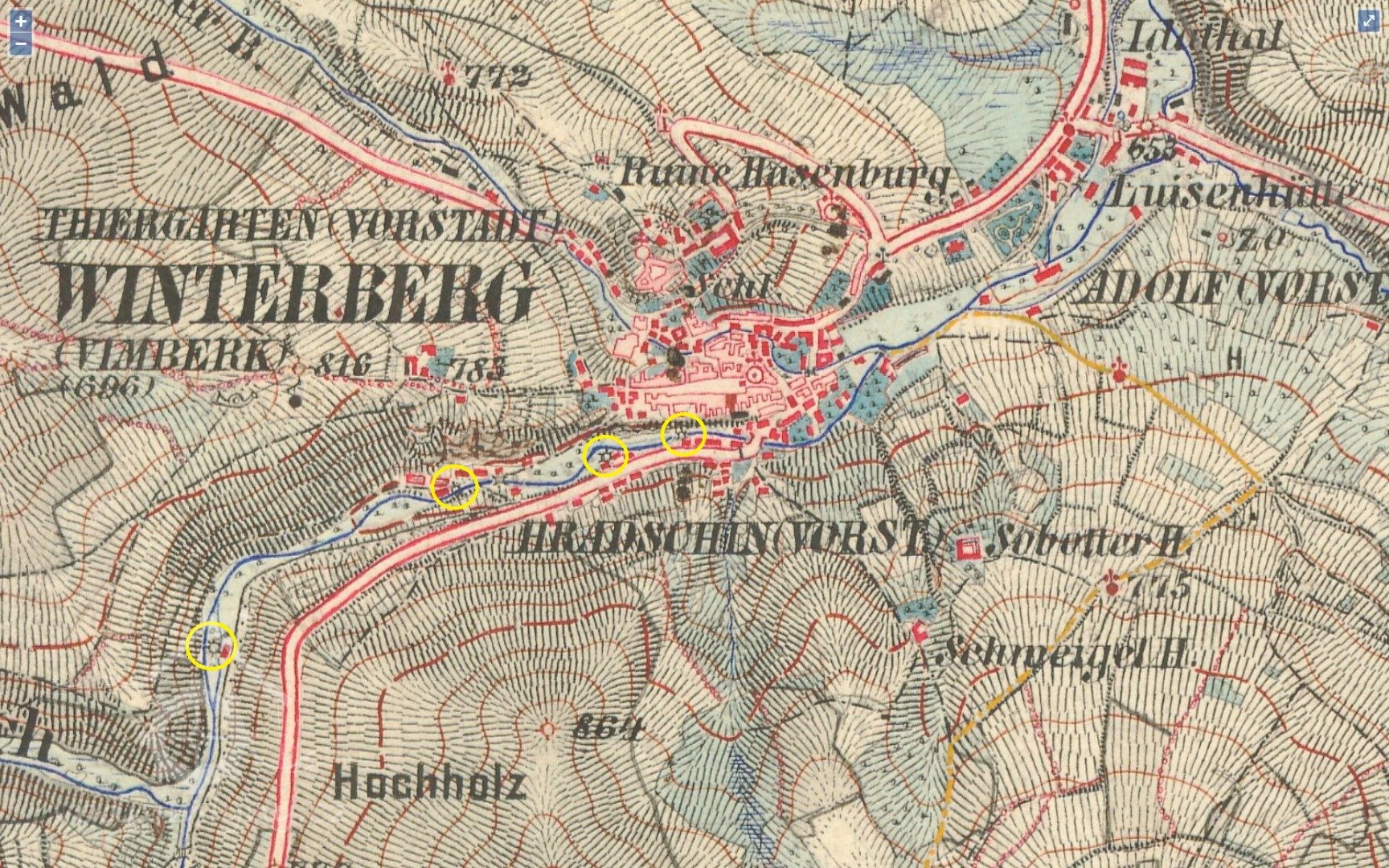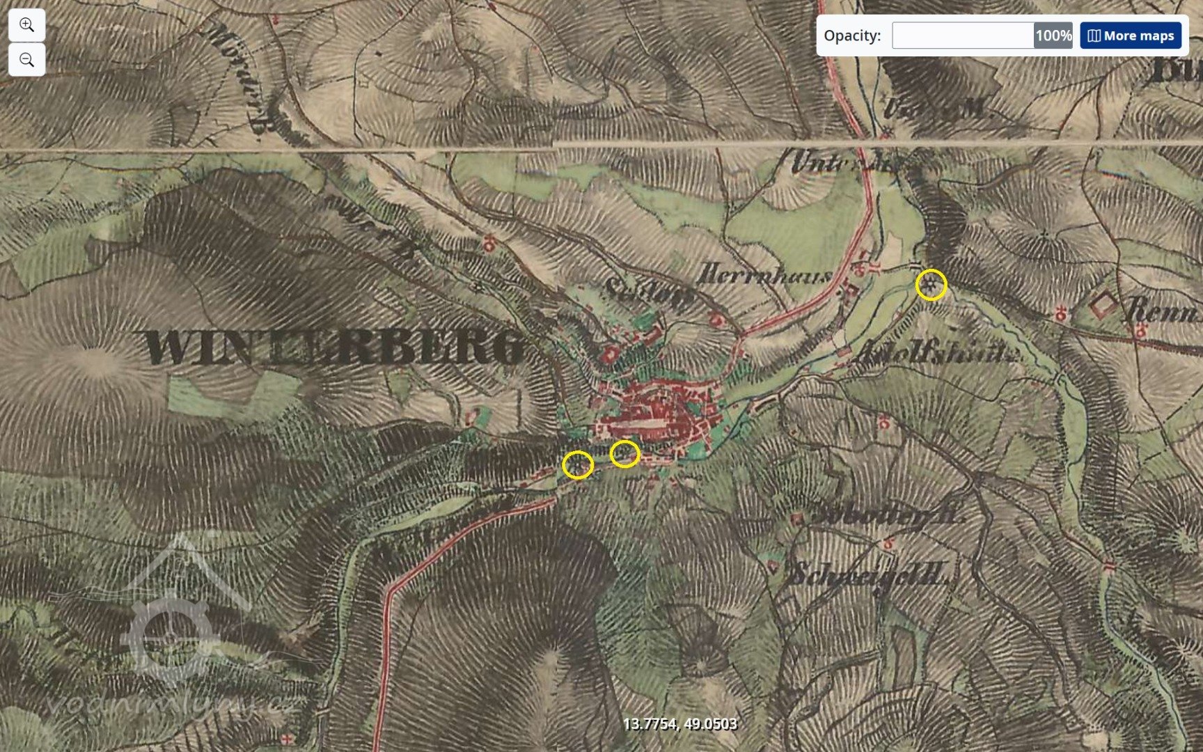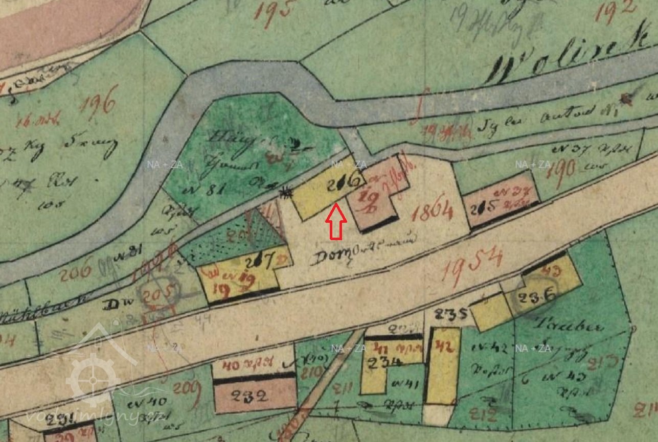 Mlýn je zachycen již na mapě I. voj. mapování.