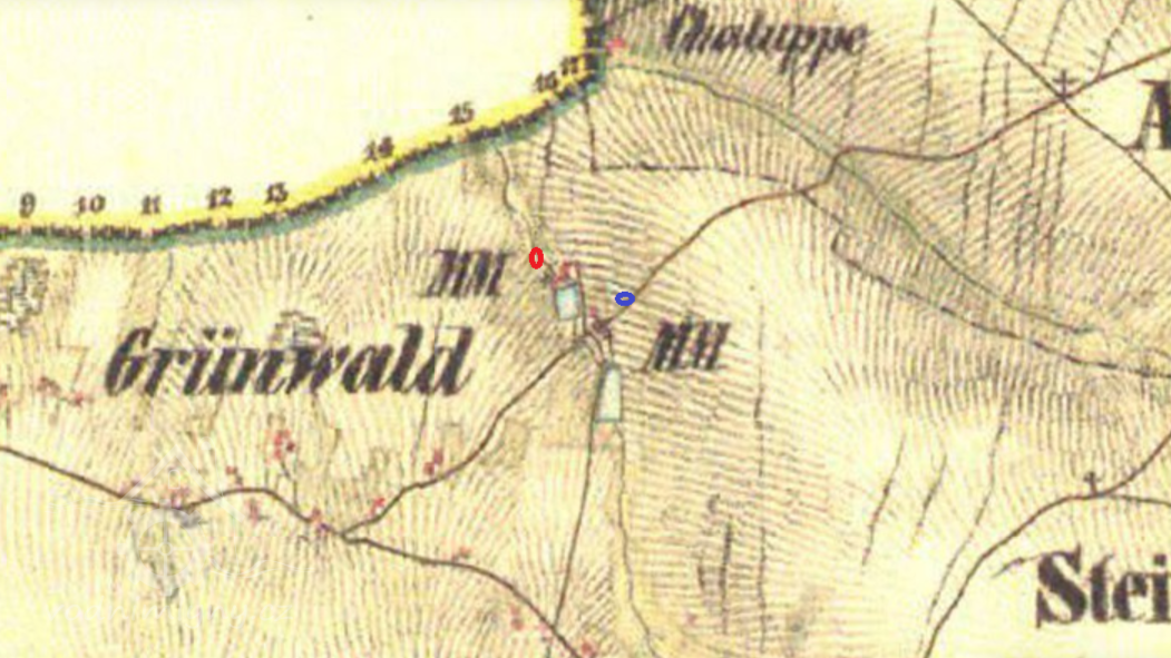 1930 - Rudolf Peter - v provozu už jen pila, která stála u státní hranice. Nikdy mlýnem nebyla, ale patřila k čp. 38. Pro úplnost jsou uvedeny v rubrice Technologické vybavení, pohon parametry jejího vodního kola.