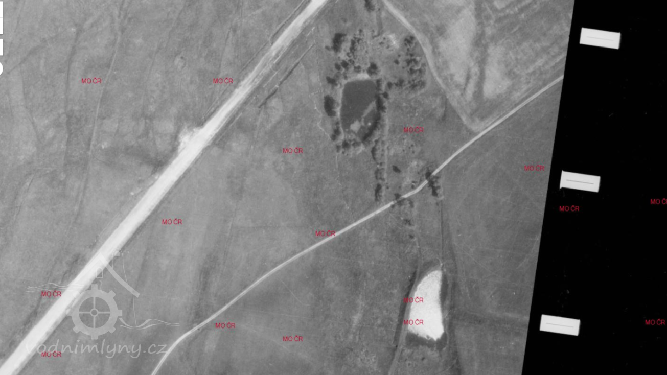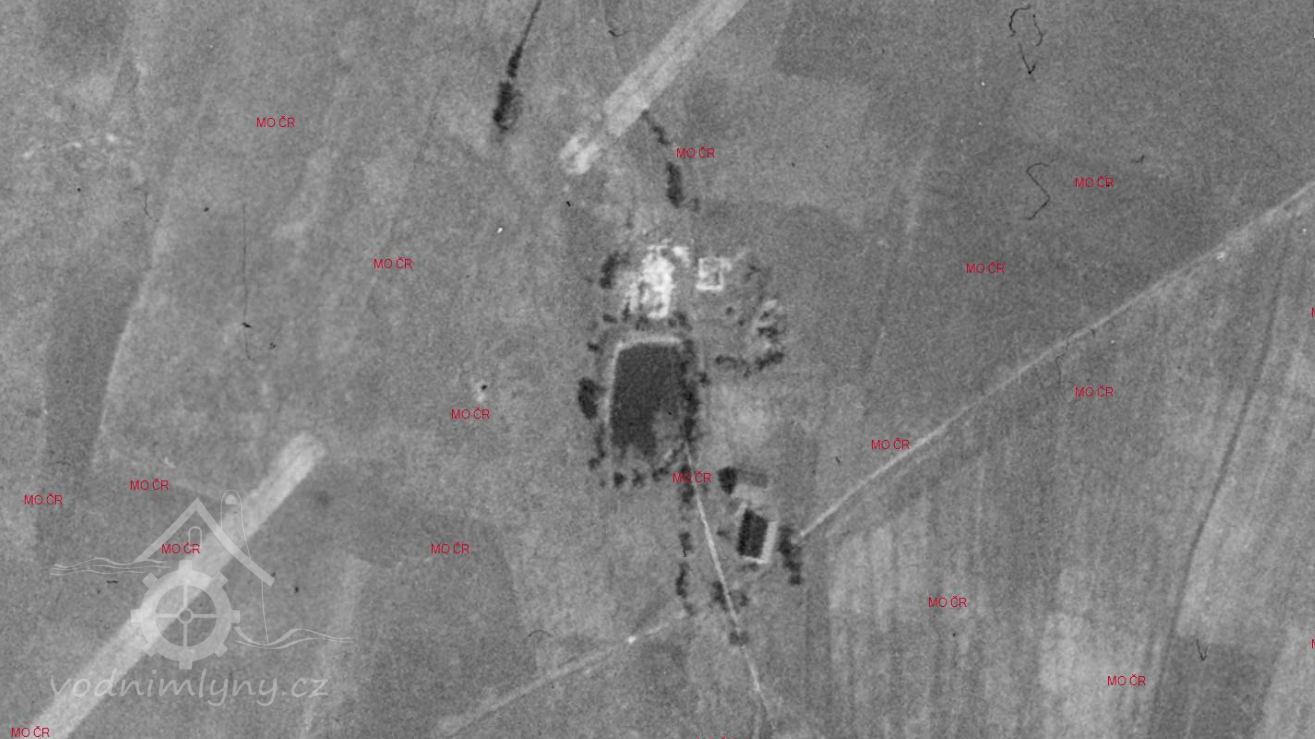 1963 - stopy po mlýnu na leteckém měřičském snímku téměř nejsou patrné.