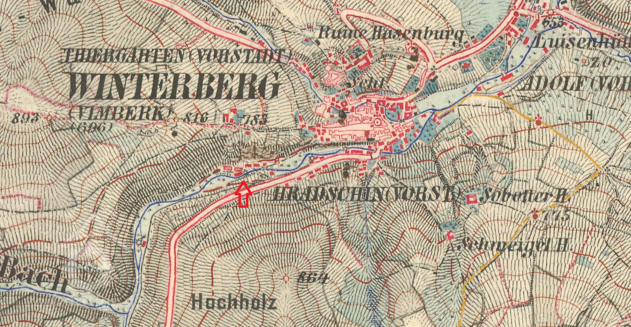 Johan Steibrener ve městě vlatnil mnoho objektů, mimo jiné také pilu postavenou cca 1 km za městem proti proudu Volyňky, kde se mimo jiné vyráběly přepravní bedny.