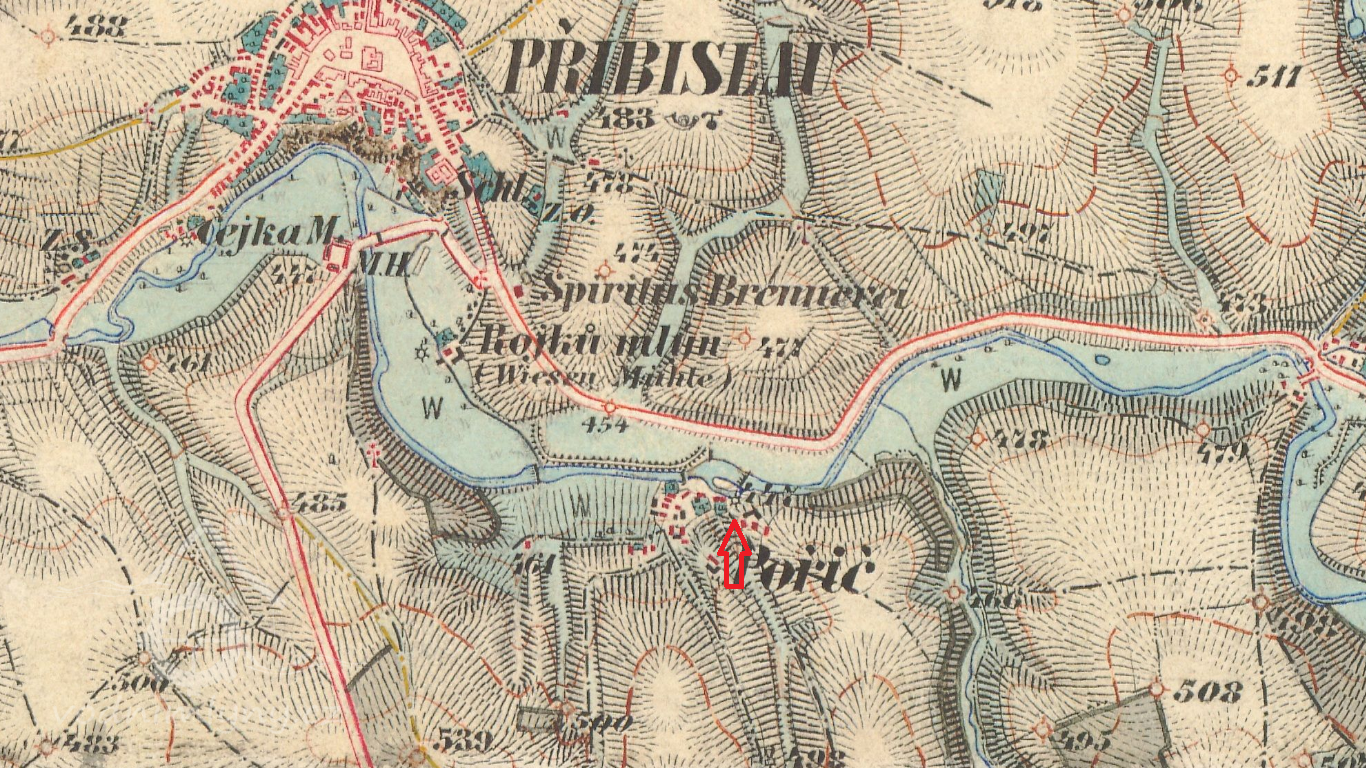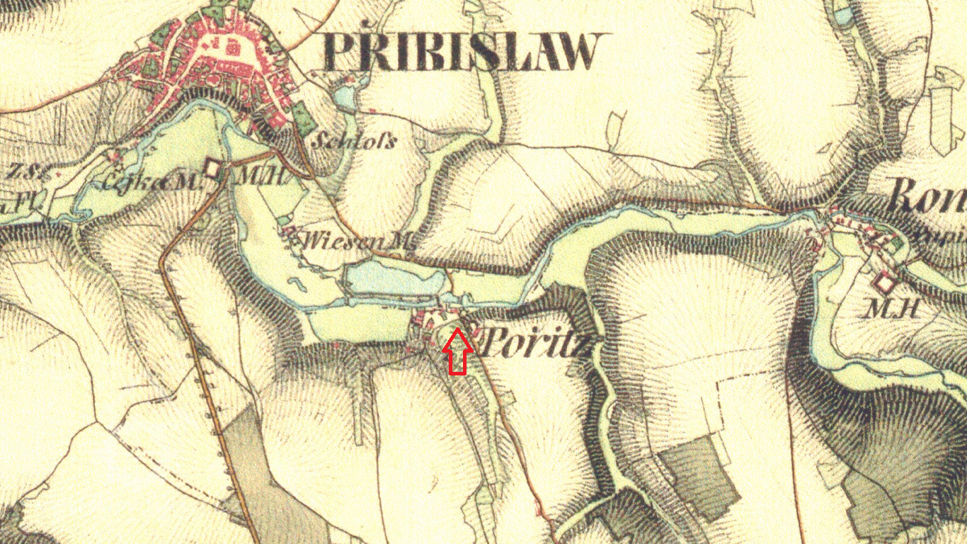 V zápisu zemského archivu se v roce 1675 uvádí v Poříčí tři usedlíci, jeden chalupník a mlýn.