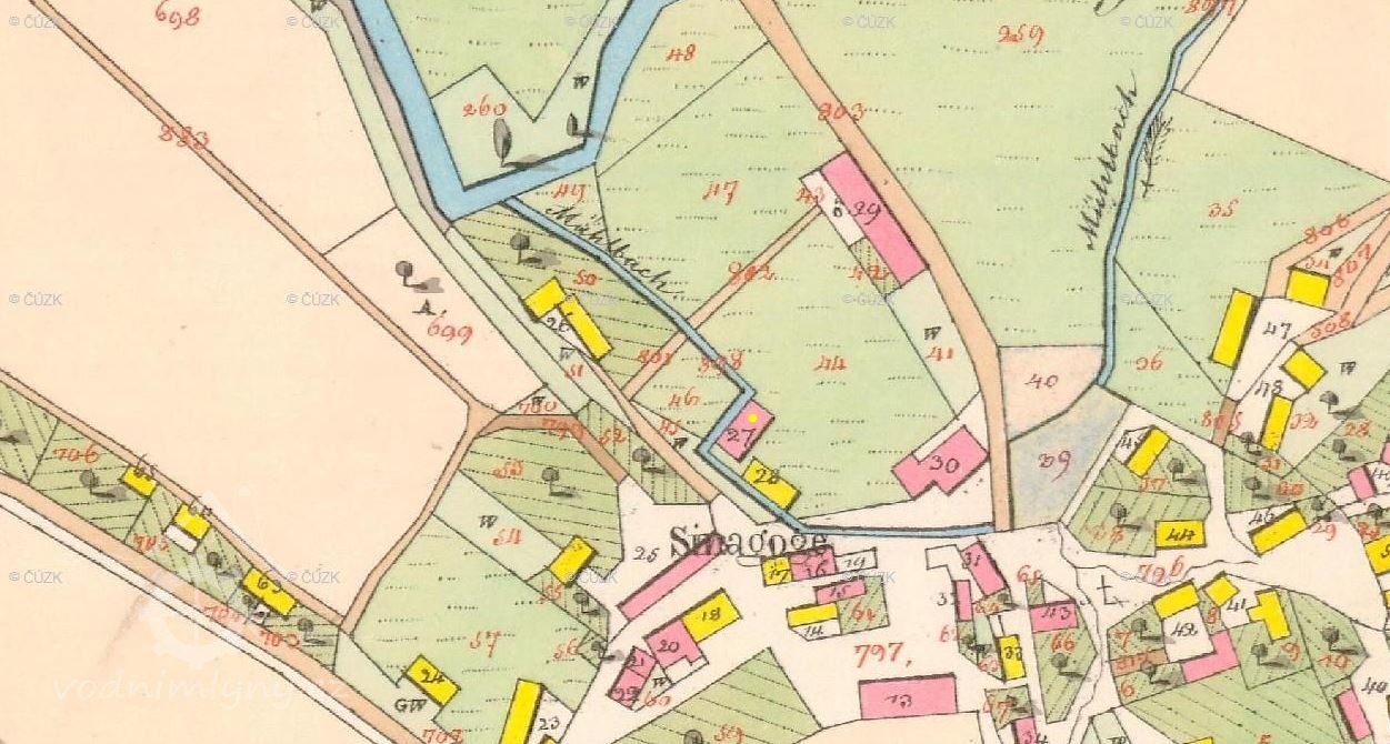 V popisu obce z roku 1756 se mlýn již neuvádí, naopak se uvádí vznik mandlovny pod bělidlem, náležející k panskému dvoru. Nájemci i zaměstnanci pocházeli ze zdejší židovské komunity, která v roce 1848 čítala na 130 osob a měla zde i synagogu a německou školu.