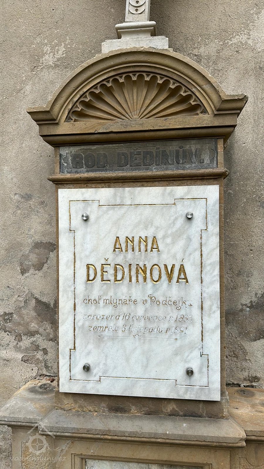 František Dědina hospodařil na mlýně do roku 1893, kdy předal živnost synu Josefovi a jeho manželce Marii. Ten nahradil dvě vodní kola jedním s transmisí, od které byly poháněny všechny mlýnské stroje. Přistavěl místnost s kuchyní pro ubytování chasy. U mlýna byla pekárna, Josef Dědina zvýšil její kapacitu a prodával pak chléb nejen přímo z prodejny ze mlýna, ale vozil ho i do Mšena, kde otevřel prodejní sklad. Skladu ve Mšeně se ujal jeho otec František Dědina, mlynář na výměnku, kde prodával chléb a mouku. (MH)