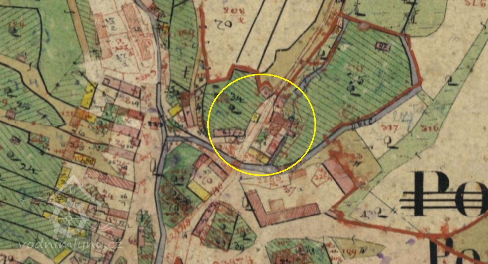Mlýnský stav stával u Podhradí, odtud šla voda strouhou k náhonu do míst domů č. 103 a č. 35.