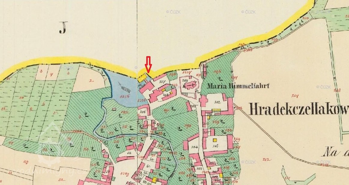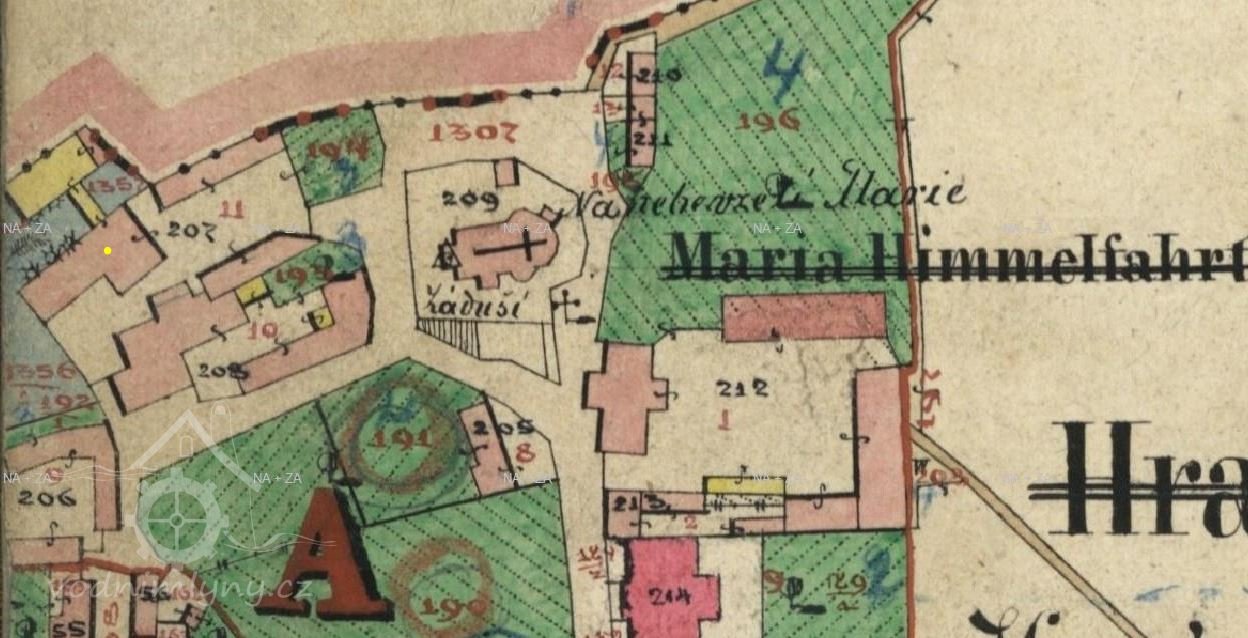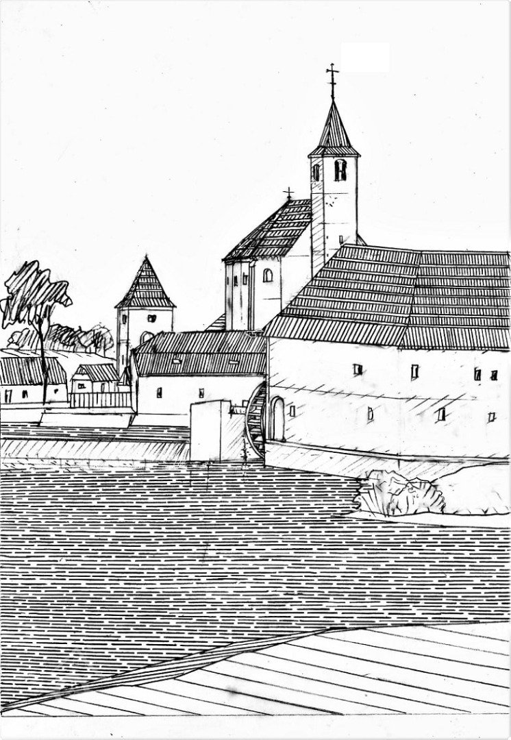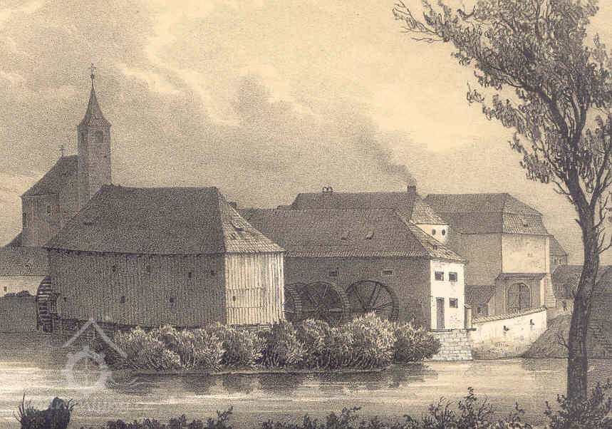 moučných 8, pila o jednom rámě jedna, slupě jedna. Platívalo se nájmu pšenice 10 strychů, žita 180 strychů, ječmene 35 strychů, prachu půdního 30 strychů“.