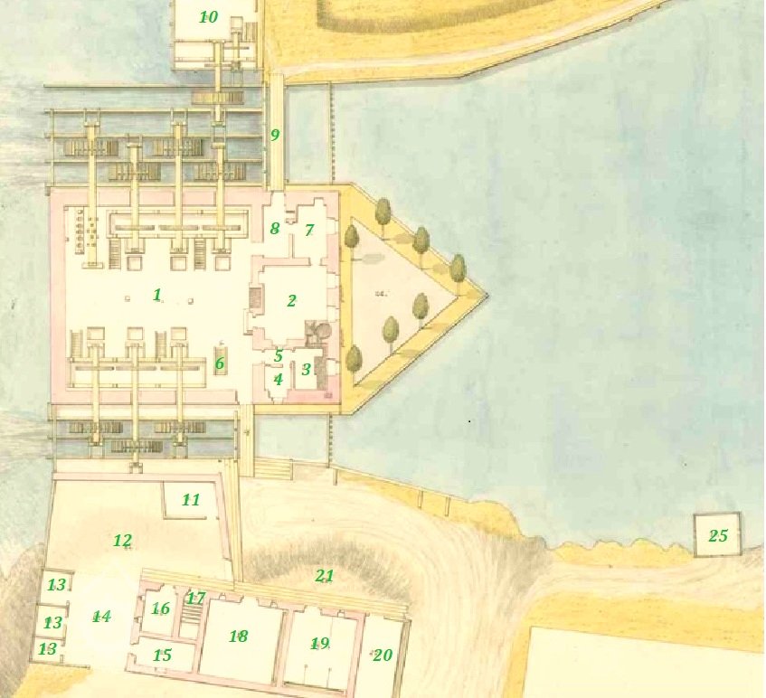 1719 opět přestavěn a rozšířen, přimlýněny Veselí, Mezimostí, Bukovsko, Drahotěšice, Kostelec, Kundratice, Líšnice, Mostečná, Radonice, Radouň, Řipec, Sviny, Vřesná, Záhoří, Zlukov, Žíšov ad., celkem 133 poddaných.