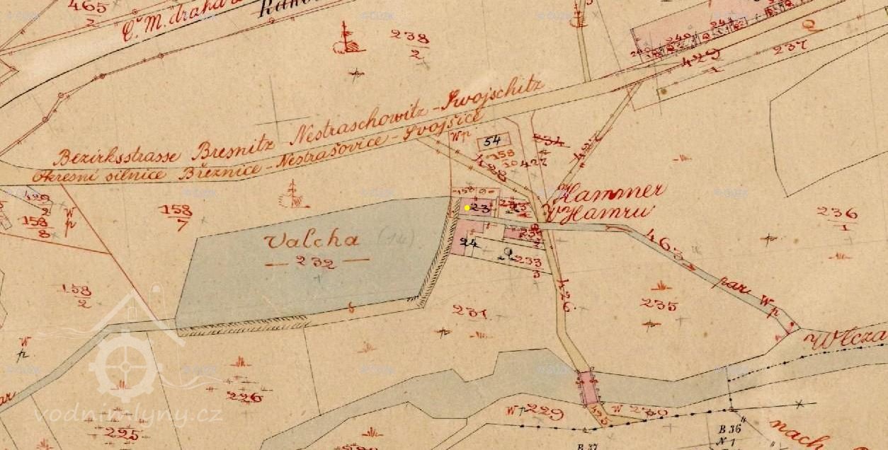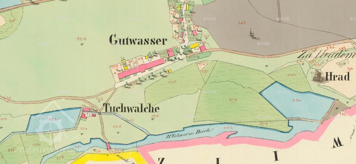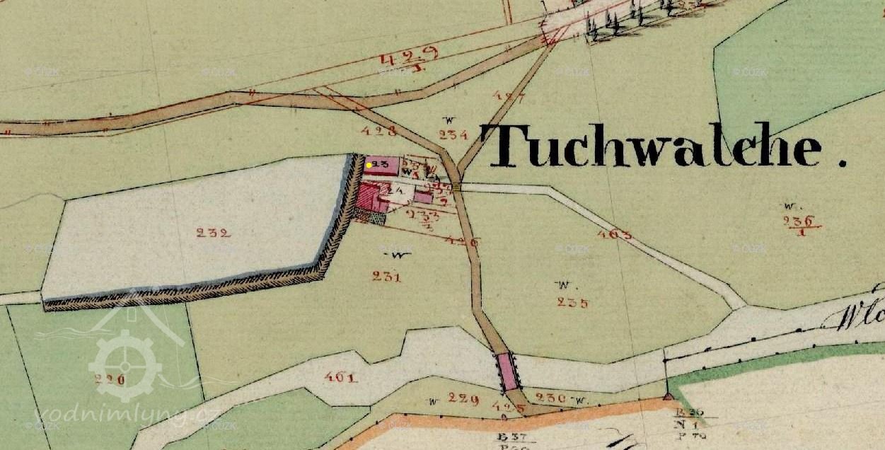 Ještě v roce 1830 zde stála podle názvu valcha.