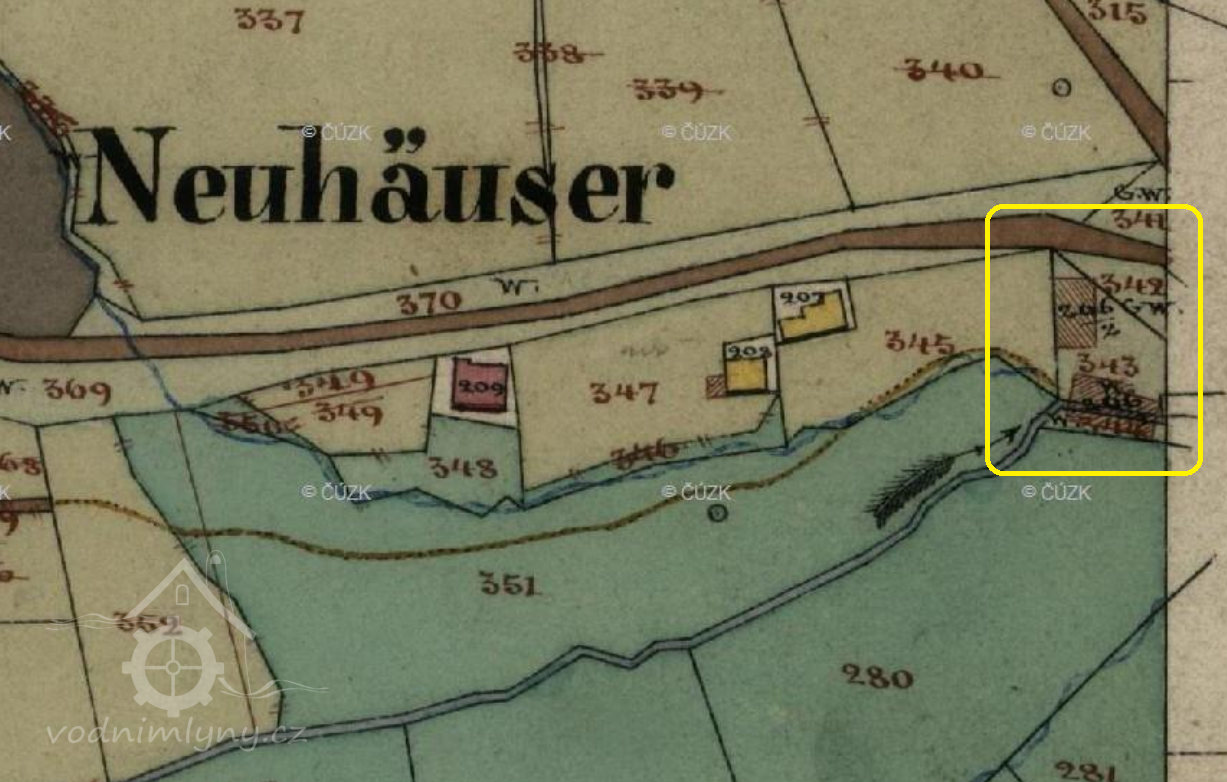1751 Tereziánský katastr: nově zřízená vrchnostenská pila o 1 kole