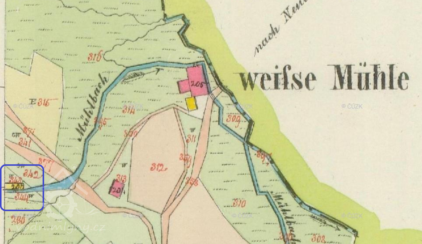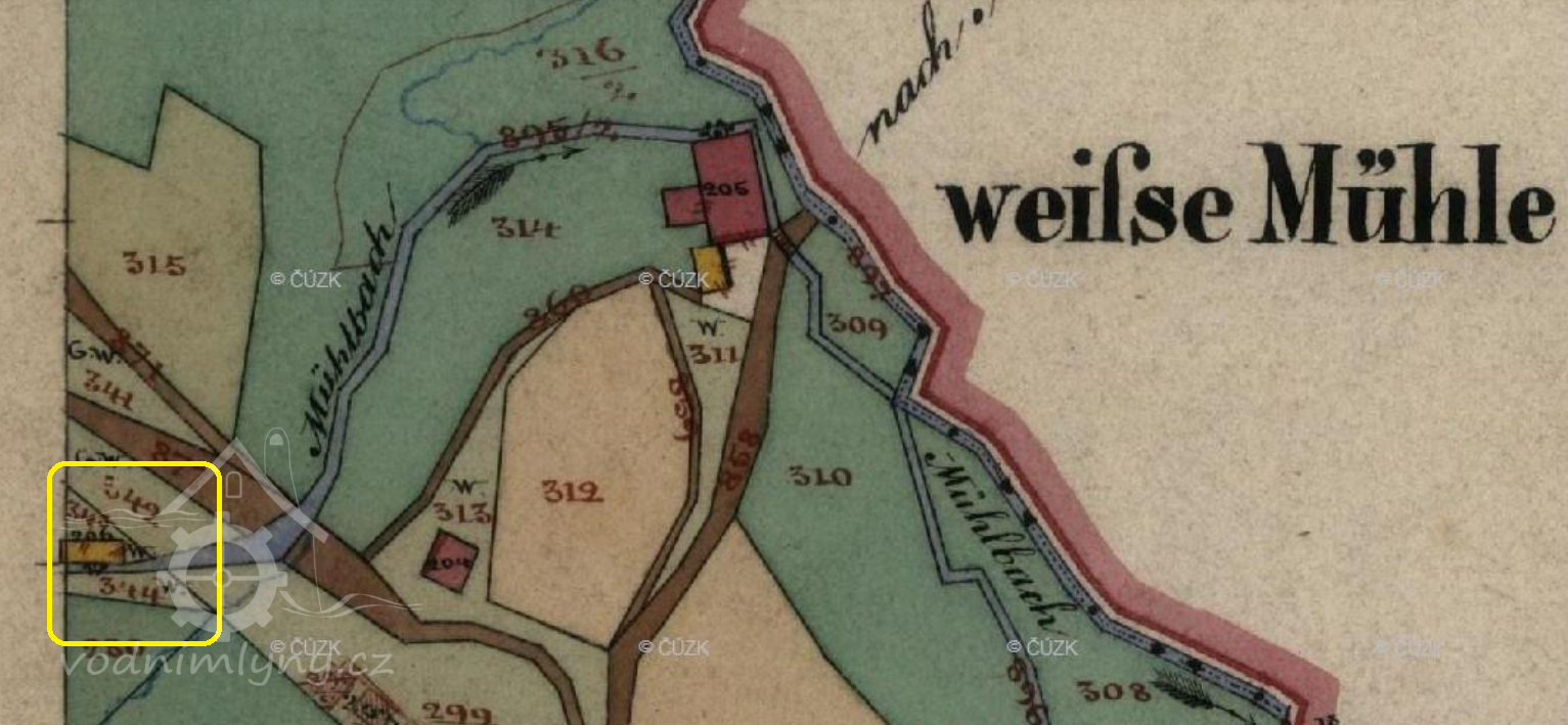 8.5.1765 mlýn vyhořel, byl však již zpustlý bez čísla a bez obyvatel, patřil A. Kirschovi, majiteli níže položeného Bílého mlýna