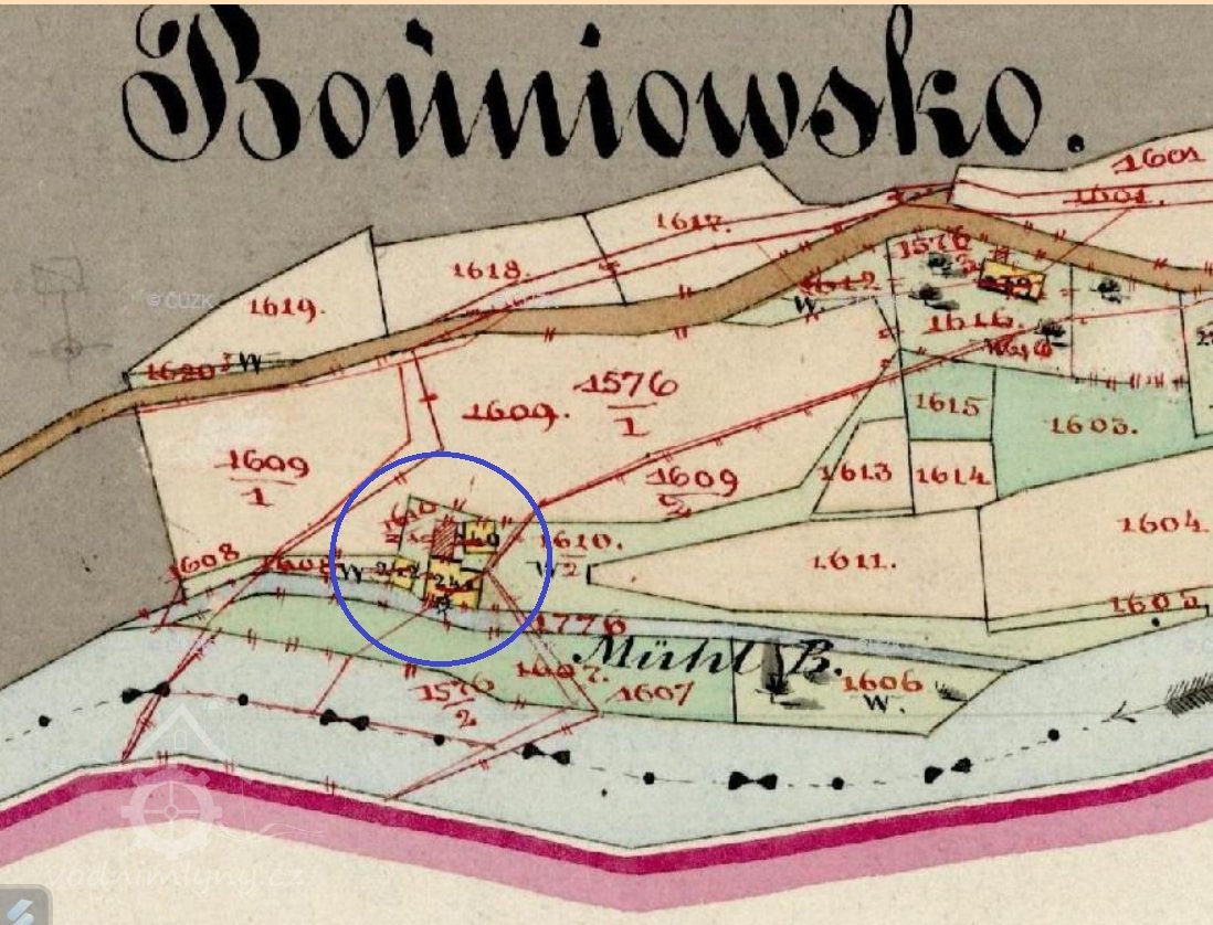 mlýn již není patrný ani na leteckém snímku z roku 1938