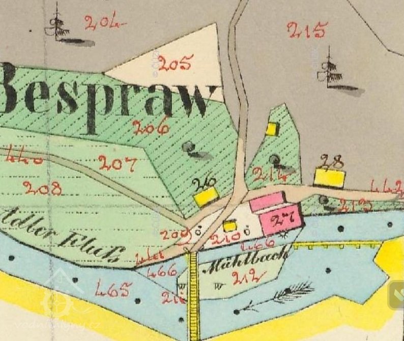 Valcha s mlýnem se nazývaly "Na Bezpravě", později byly přiřazeny pod Dobrou Vodu. Nejstarší zmínka se nachází v gruntovních knihách Brandýsa n. Orl. k r. 1538. R. 1586 byl mlynářem Jan Michálek, r. 1594 Jan Chrtek a r. 1612 koupil mlýn od Adama Michka J. M. Žerotín. Valcha byla k mlýnu přistavěna později. Po uzavření valchy mlýn ještě nějakou dobu mlel. Na místě byla pak postavena tovární budova fy Orlicia. Mlýn s valchou je zachycen byl na kresbě Fr. Egrleho z. 1868, kde je zděný z kamene, částečně dřevěný, se třemi koly na spodní vodu. Budova je postavena na půdorysu písmene L, patrová, s valbovou střechou krytou šindelem. Obytné stavení je zachyceno jako roubené, přízemní. Budovy firmy Orlicia stojí přibližně ve stejných místech, jako stál mlýn a obytná chalupa. Z mlýna je pravděpodobně dochováno částečně zdivo. Mezi cihlami je i lomový kámen, jež by mohl pocházet z mlýna, především JZ nároží.