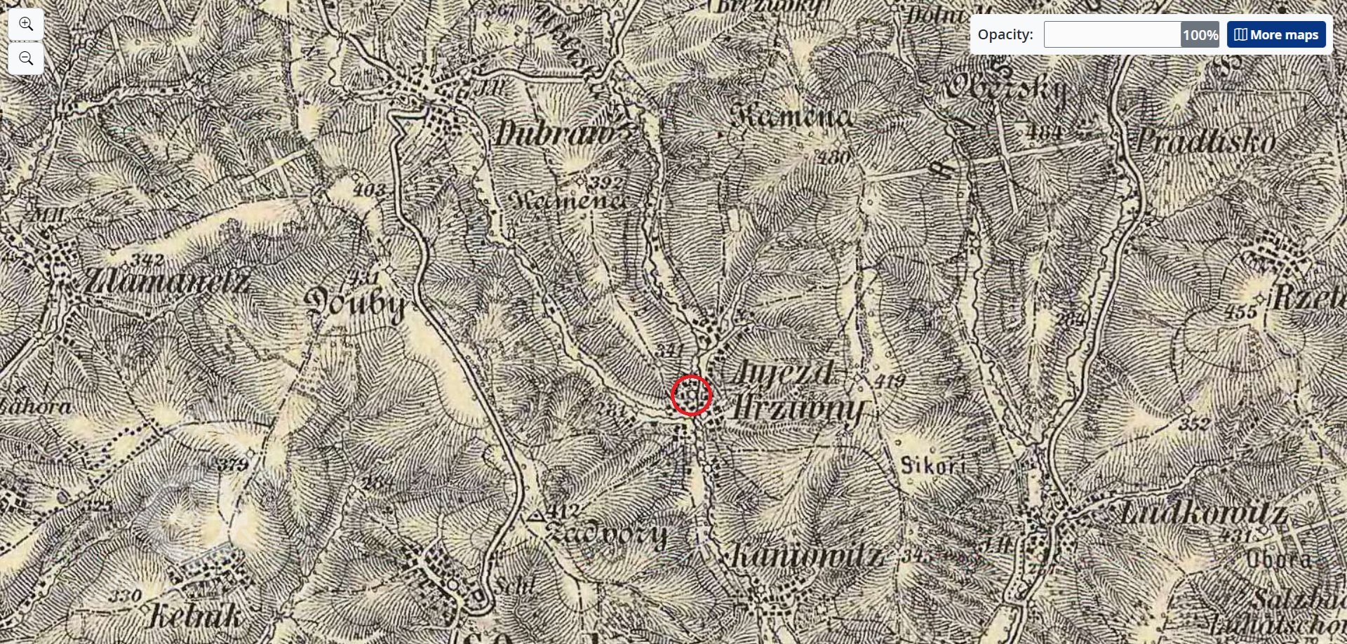 1880 František Mikel (*14.8.1822, vdovec) a syn Josef Mikel (*19.5.1842) s manž. Marií (*2.2.1850), oba jsou mlynáři