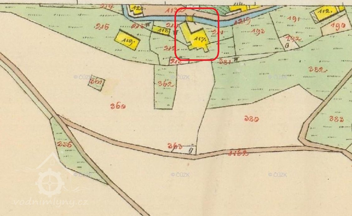 1651 Soupis poddaných podle víry: mlynář Jiřík Weinlich (34 let), žena Anna (19), dcera Kateřina (15), všichni poddaní katolíci