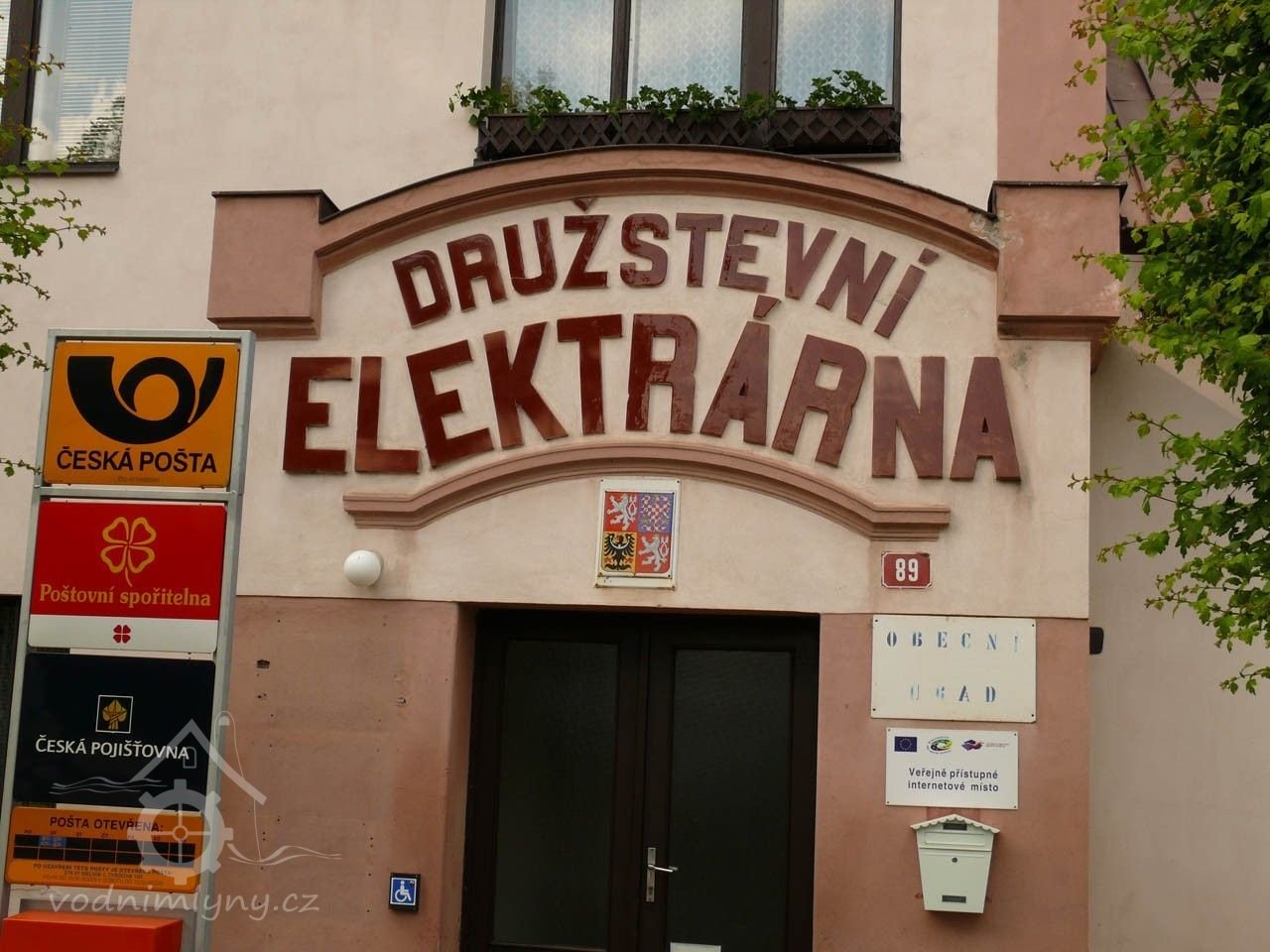Uprostřed obce byla v roce 1909 vybudována družstevní elektrárna podle projektu inženýra Kopeckého z Prahy. Stavbu provedl K. Lágner z Košátek a elektrické zařízení dodala firma A. Duda z Královských Vinohrad. Strojovna byla vybavena naftovým motorem firmy Weitzer (Grazer Waggon- & Maschinen-Fabriks-Aktiengesellschaft), vedle ní se nacházel mlýn se šrotovníkem a v suterénu byla zřízena u studny čerpací stanice. Na druhé straně chodby byla akumulátorovna s akumulátory značky Tudor a skladiště, v patře se nacházel byt strojníka a družstevní kancelář. Elektrárna zásobovala jednotlivé usedlosti a veřejné osvětlení. Po zrušení elektrárny koupila objekt v roce 1935 obec, a umístila do něj školní učebnu, kuchyni a kanceláře. Dnes v budově sídlí obecní úřad, pošta a lékařská ordinace.