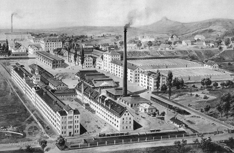 Roku 1843 koupil Franz Liebieg (starší bratr známějšího Johanna Liebiega) mlýn ve Vesci a zavedl zde výrobu orleánu a kašmíru, tedy potištěných látek, které se dříve dovážely z ciziny. V roce 1863 byla postavena první mechanická tkalcovna trhané vlny, roku 1887 přádelna česané příze. V roce 1890 byla do podniku zavedena železniční vlečka. Ve dvacátých letech byla firma akcionována a v roce 1929 ukončila výrobu. Budovy byly pronajímány, po II. světové válce zde sídlil n. p. Liaz. Většina budov rozsáhlého areálu mezi dnešními ulicemi Slovanská a Kašparova již nestojí nebo byla výrazně přestavěna. Jedna z tkalcoven ze šedesátých let 19. století, čp. 40 v Kamenické ulici, užívaná od roku 1945 jako bytový dům, si však zachovala charakteristické proporce, fasády i původní zastřešení. Budovy čp. 743 a 471 jsou nadále využívány jako objekty pro výrobu či skladování.
