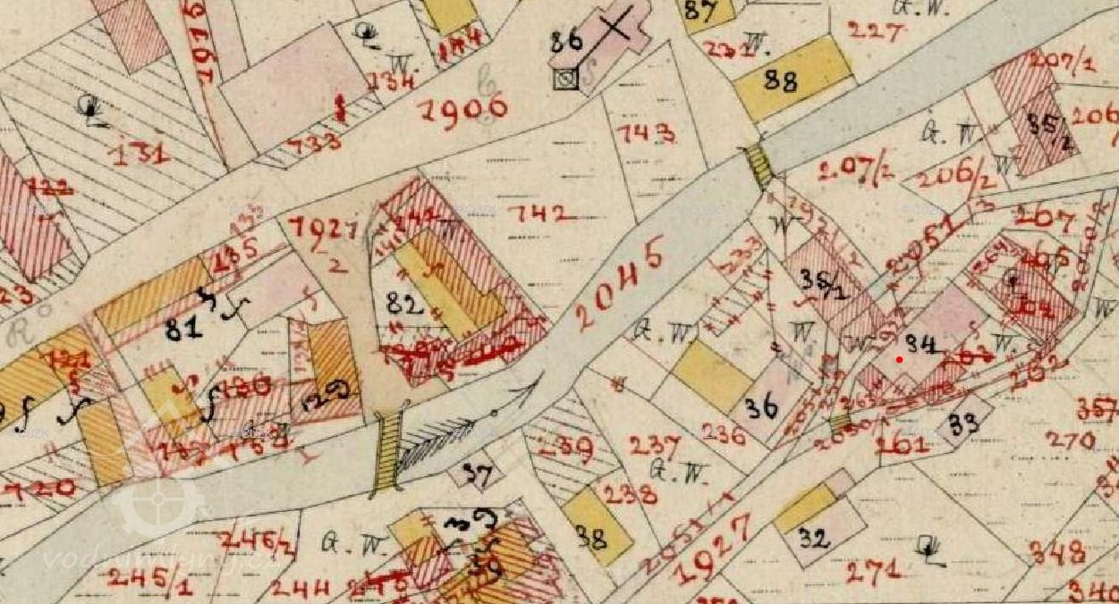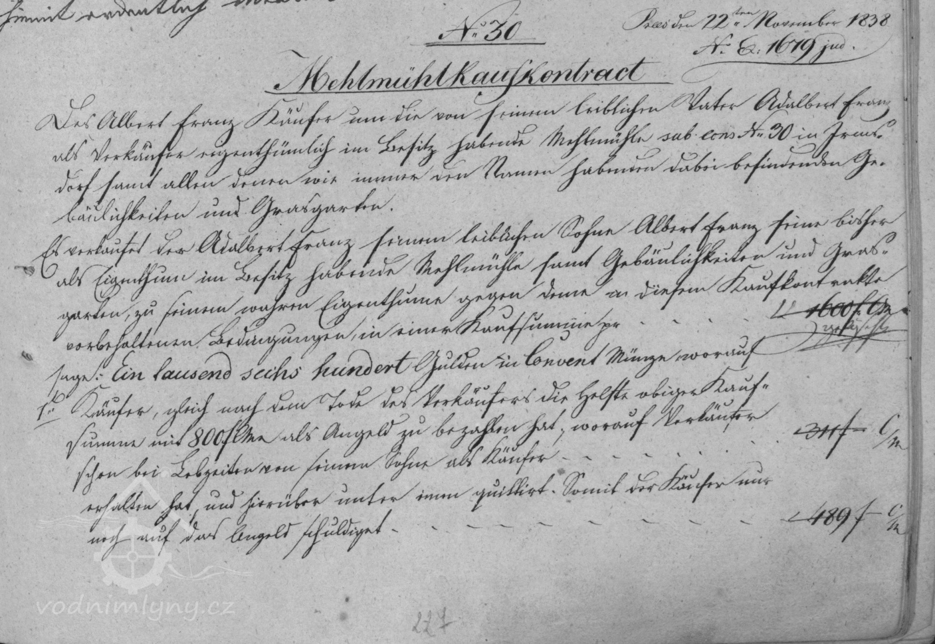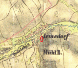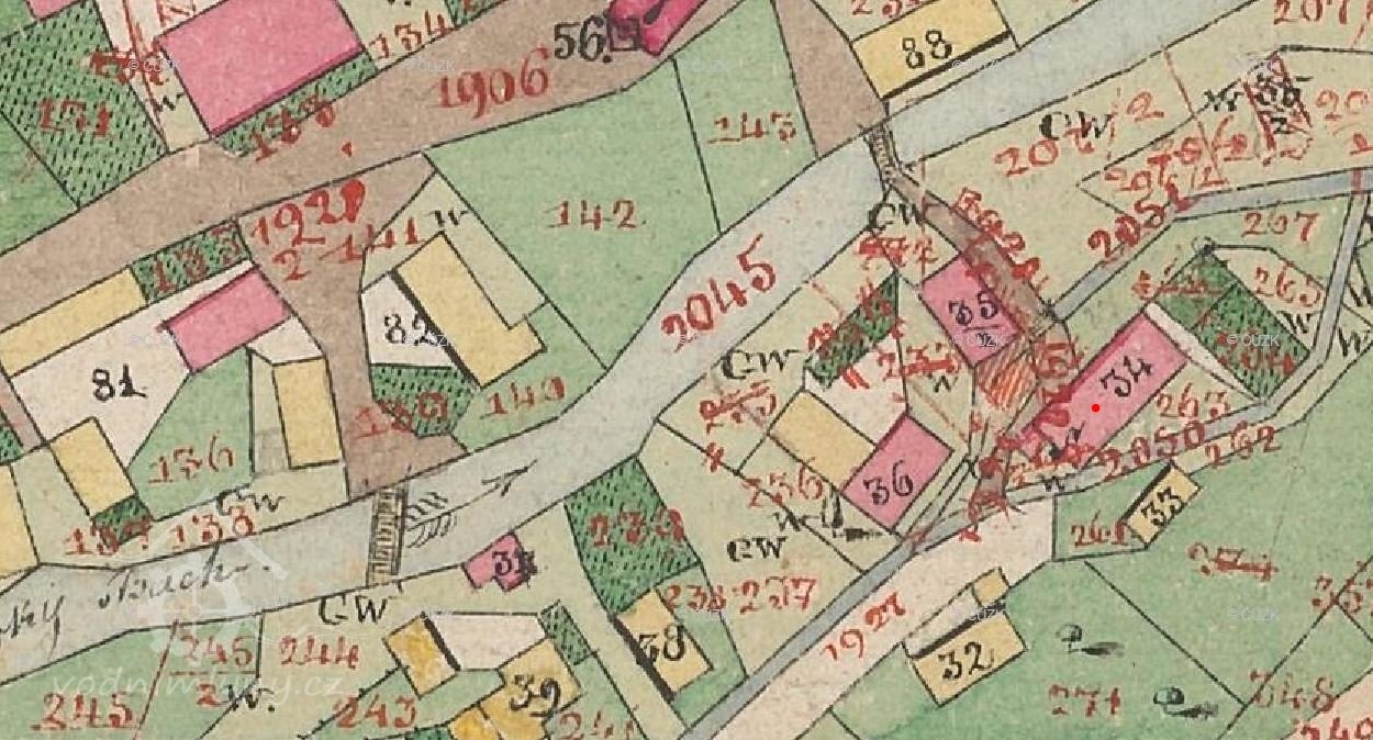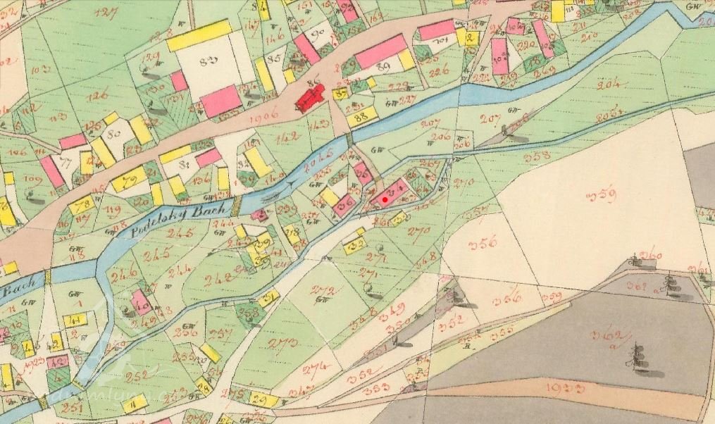 V roce 1838 mlýn vlastní Albert Franz, kterému patří také statek čp. 48 v sousedství kostela. Majetkové propojení spadá zřejmě již do roku 1806.