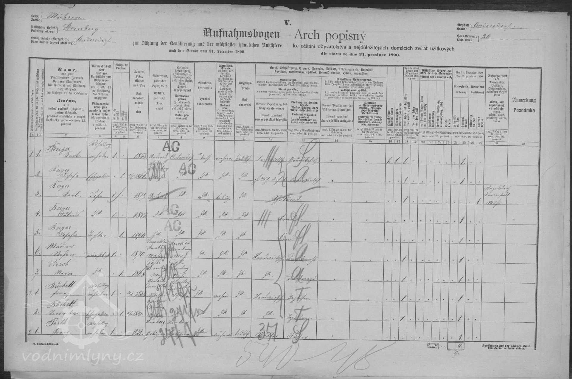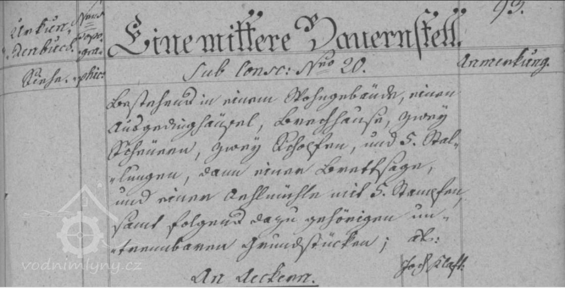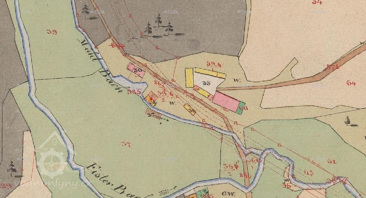 V roce 1890 je mlýn sice stále veden pod čp. 20, ale má jiného vlastníka, než zbytek hospodářství. V roce 1890 mlýn vlastní mlynář Franz Pesth narozen 1831, zatímco hospodářství vlastnil Paul Berger.