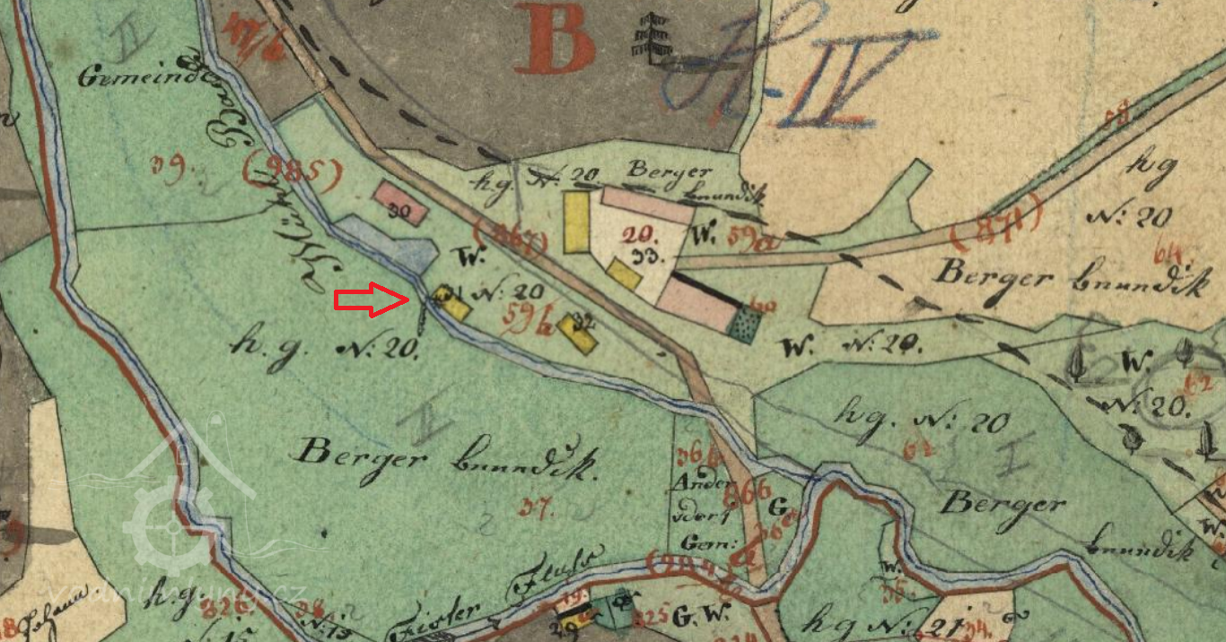 V roce 1798 vlastní hospodářství čp. 20 Joseph Berger, v roce 1826 Benedikt Berger.