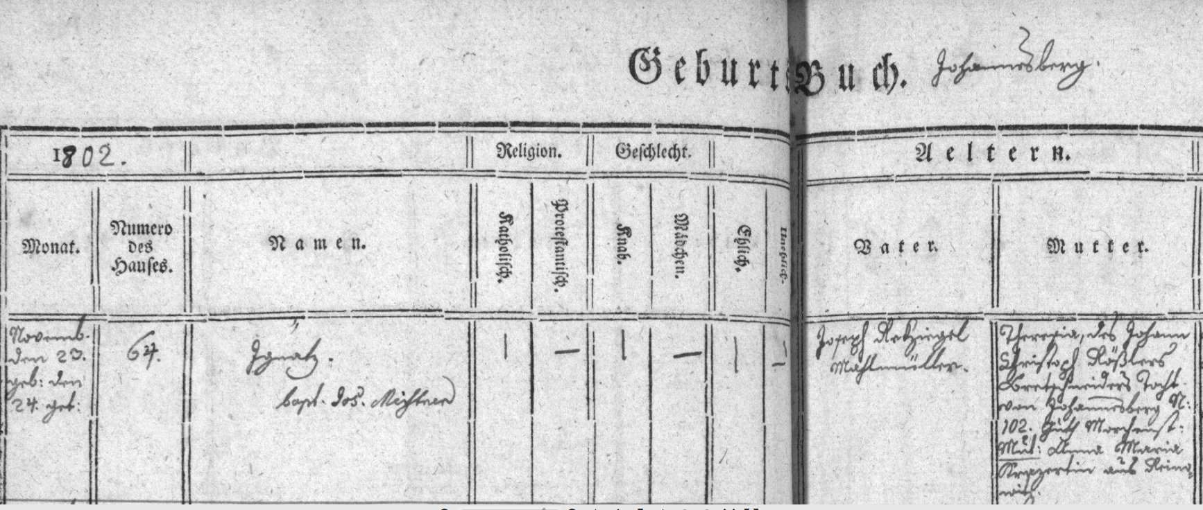 1797 Josef Reckziegel s manželkou Theresií Rössler, dcerou pilaře z Janova n.N. čp. 102. Narozeny děti Barbara 1797, příští mlynář Franz Anton 12.8.1799, Ignatz 1802, Anna Franziska 1808.