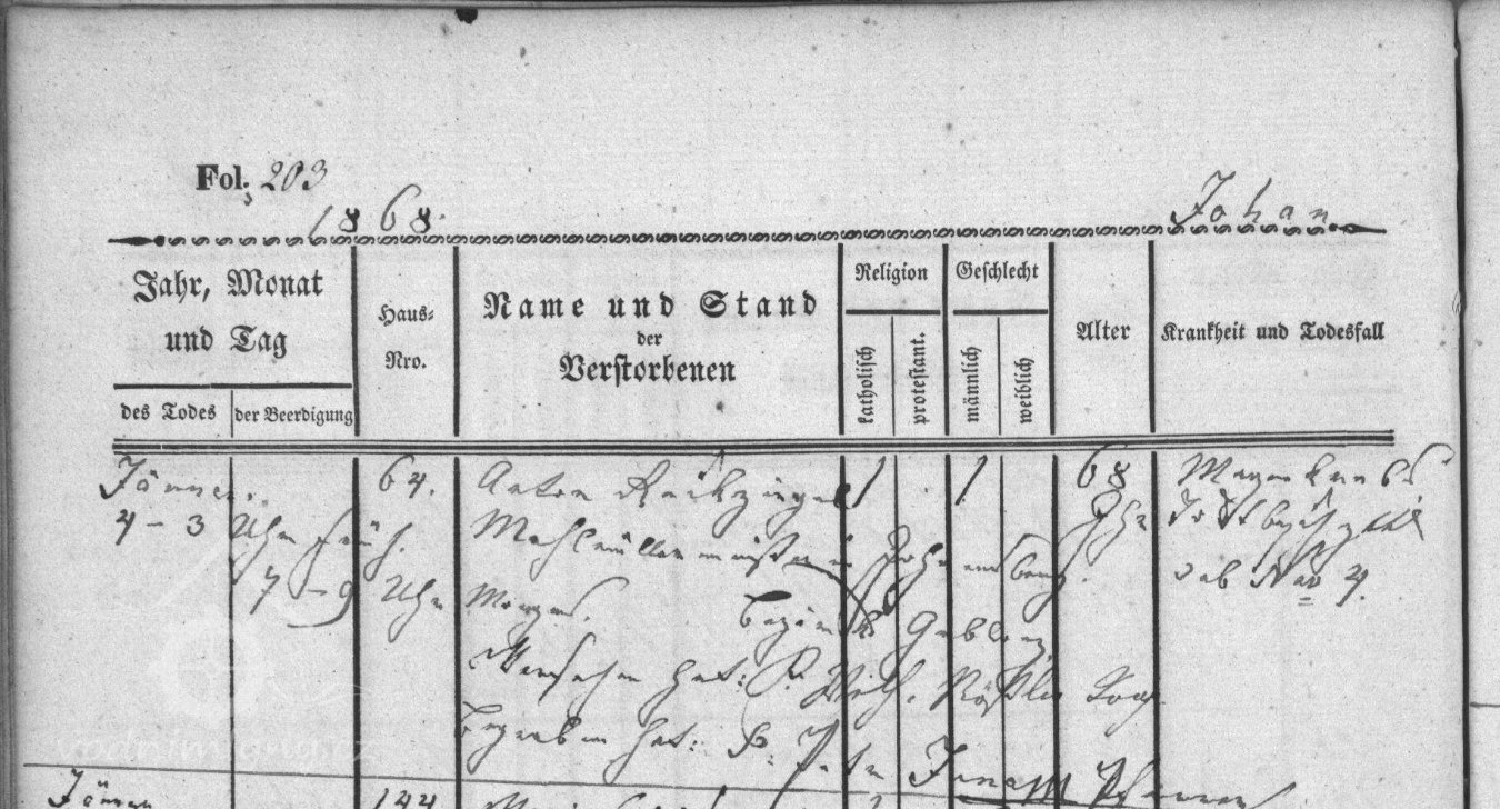 1824 Franz Anton Reckziegel (uváděn také pouze jako Anton) a manželka Veronika Prodiger, dcera sedláka z Karlsbergu, děti Betha 1824, Carolina 1826, Maria Anna 1828, Franz 1830, Wenzel 1832, Emilia 1834, Barbara 1836, Emilianus 1841, Veronika 1843.