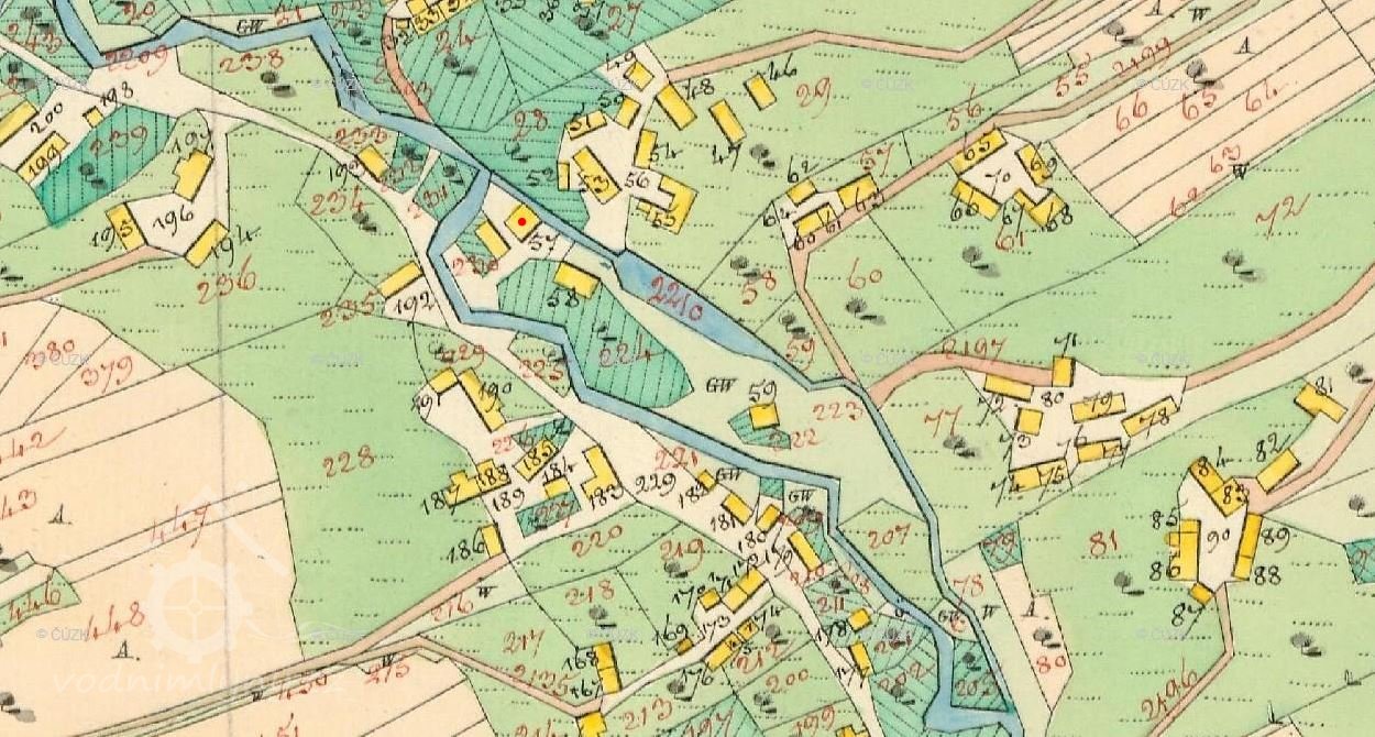 Mlýn je zachycen již na mapě I. voj. mapování.
