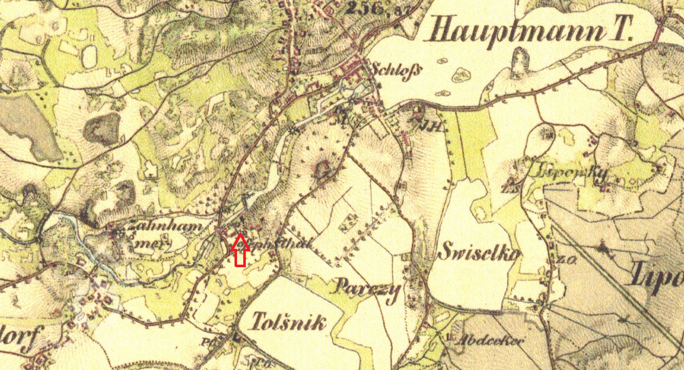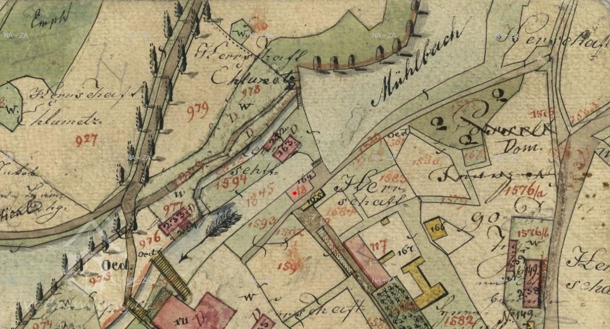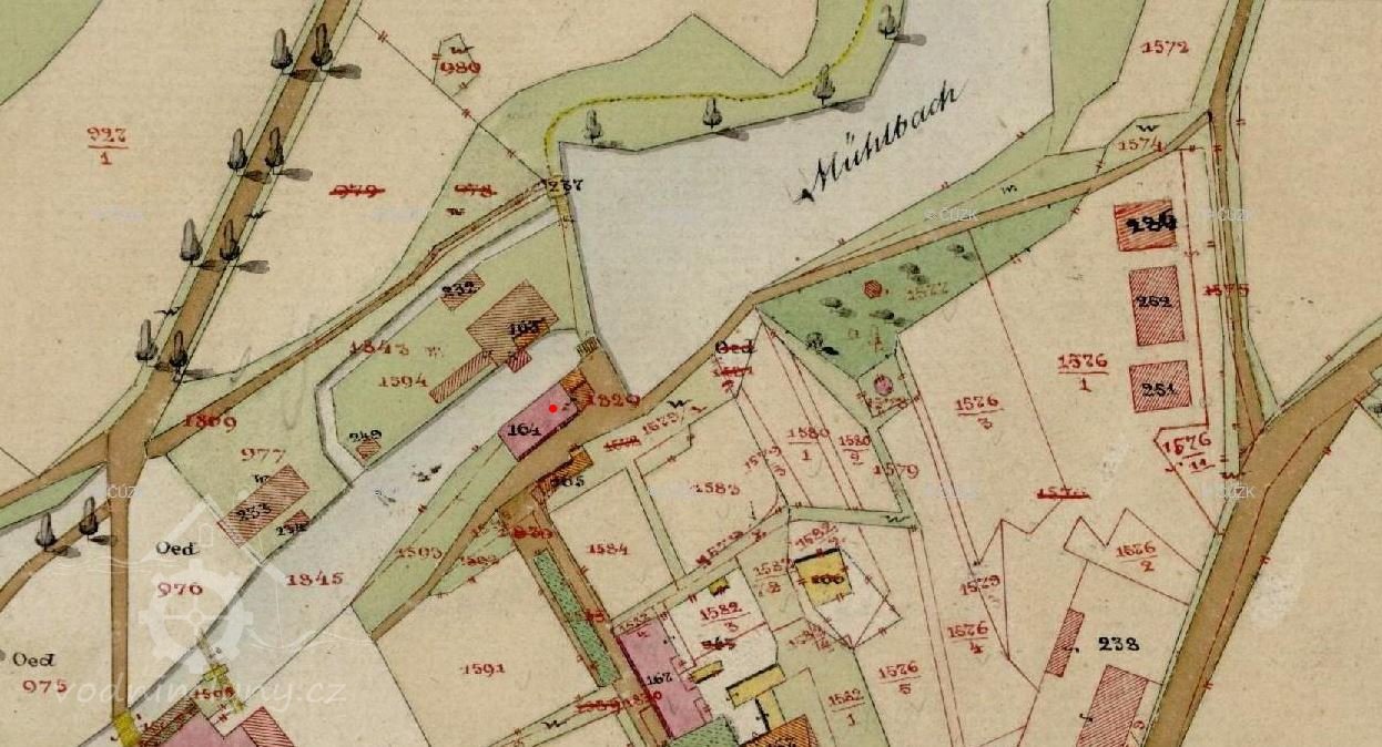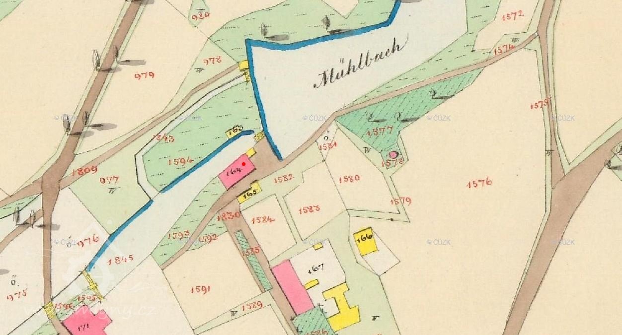 Mlýn je zachycen již na mapě I. voj. mapování.